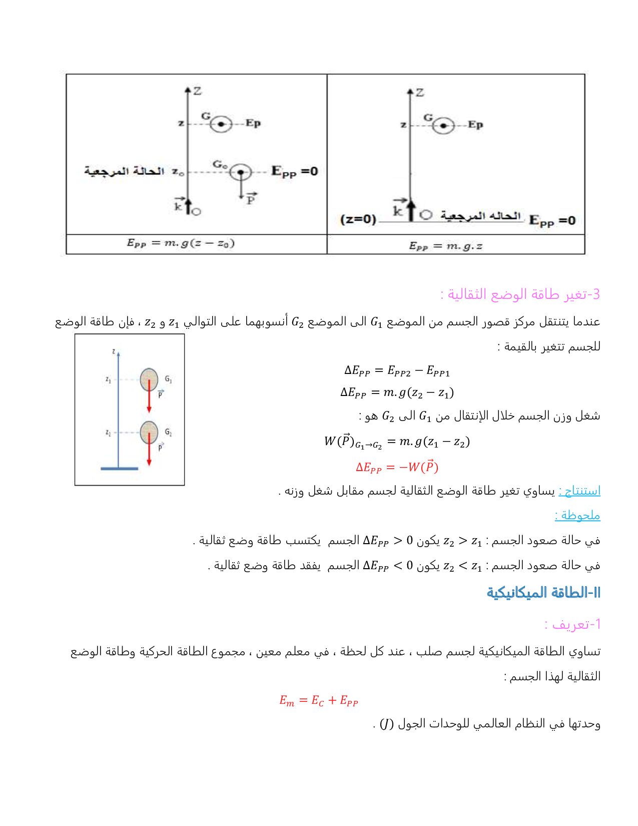 الشغل وطاقة الوضع الثقالية - الطاقة الميكانيكية - الدرس 2
