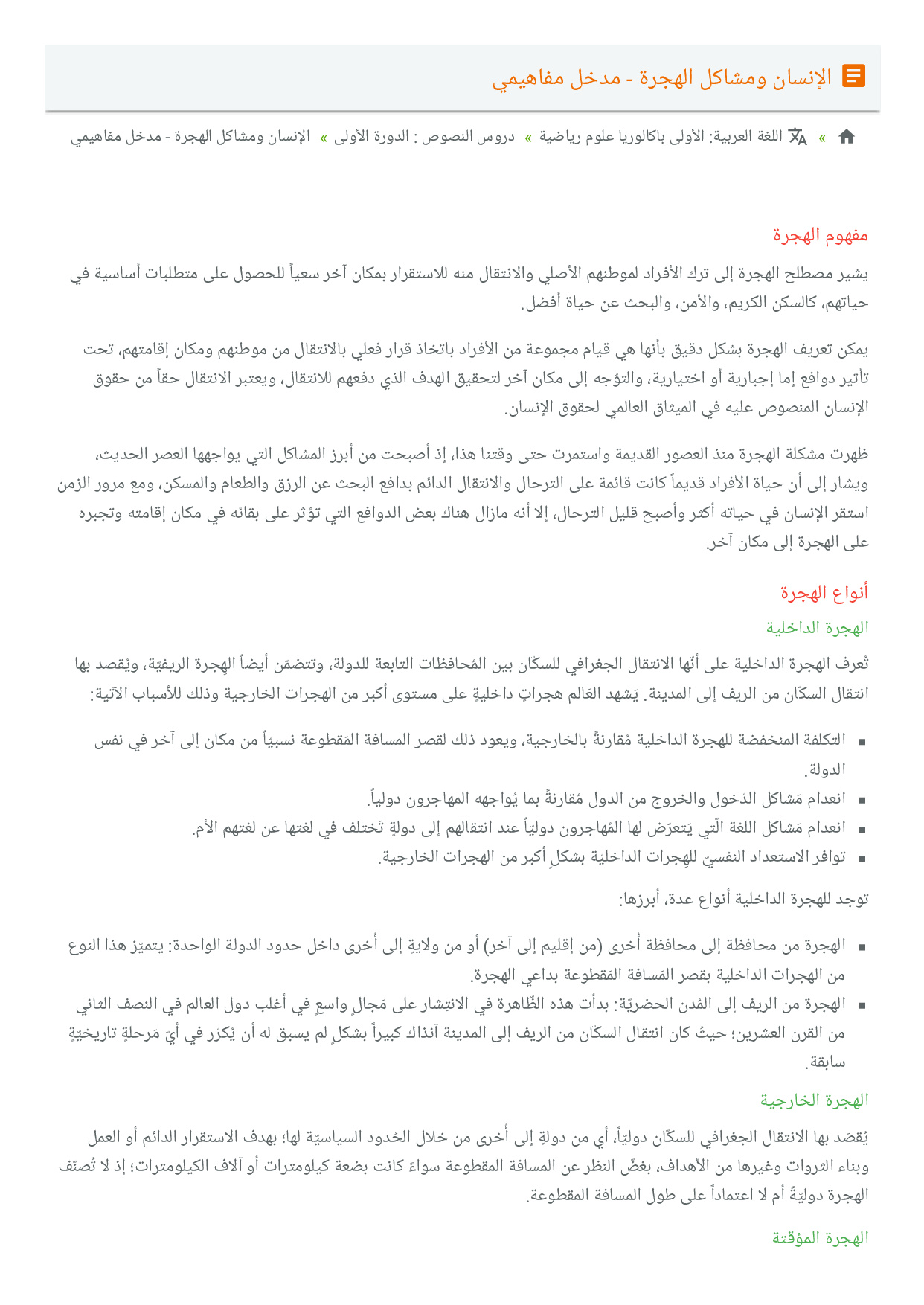الإنسان ومشاكل الهجرة - مدخل مفاهيمي