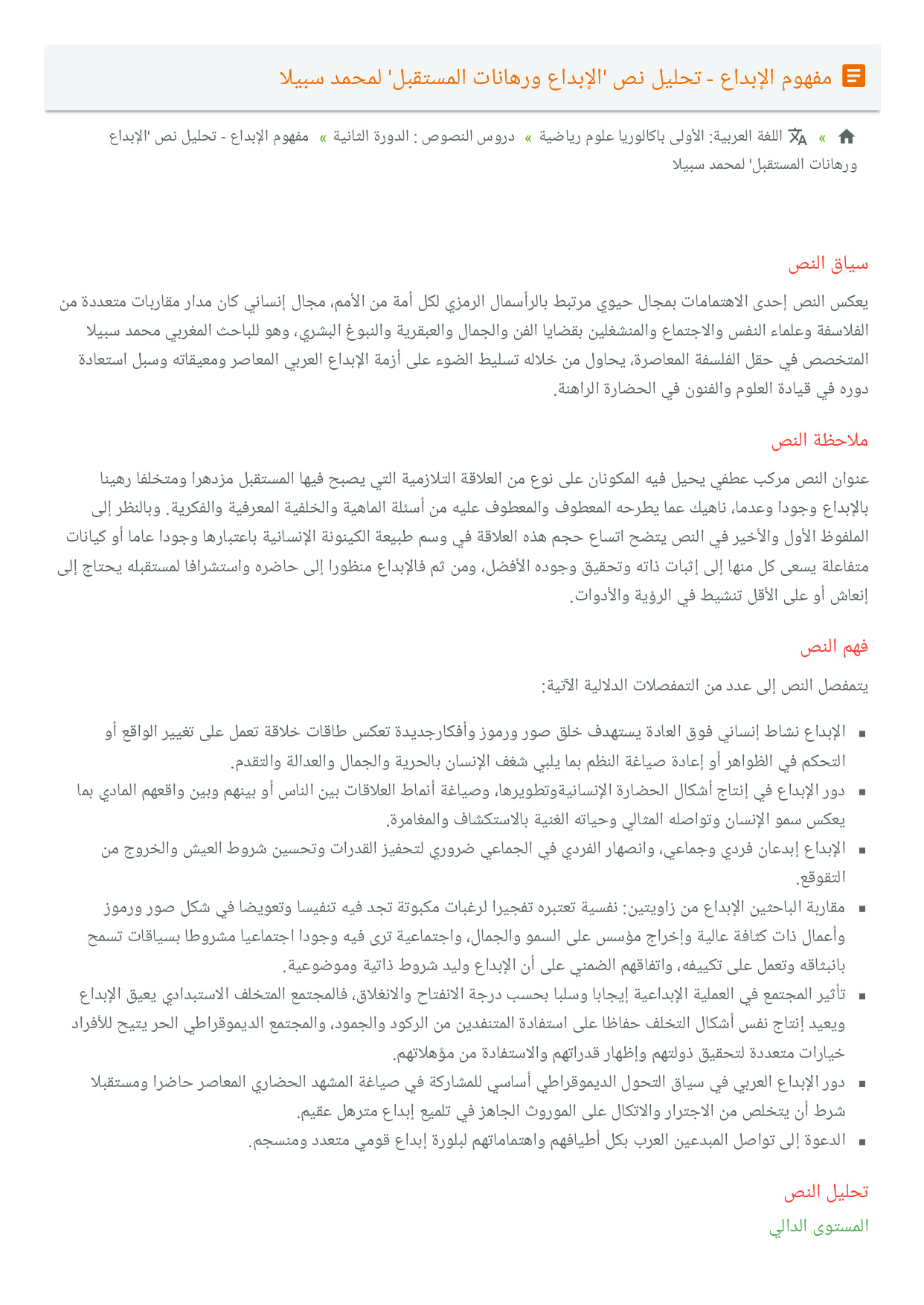 مفهوم الإبداع - تحليل نص 'الإبداع ورهانات المستقبل' لمحمد سبيلا