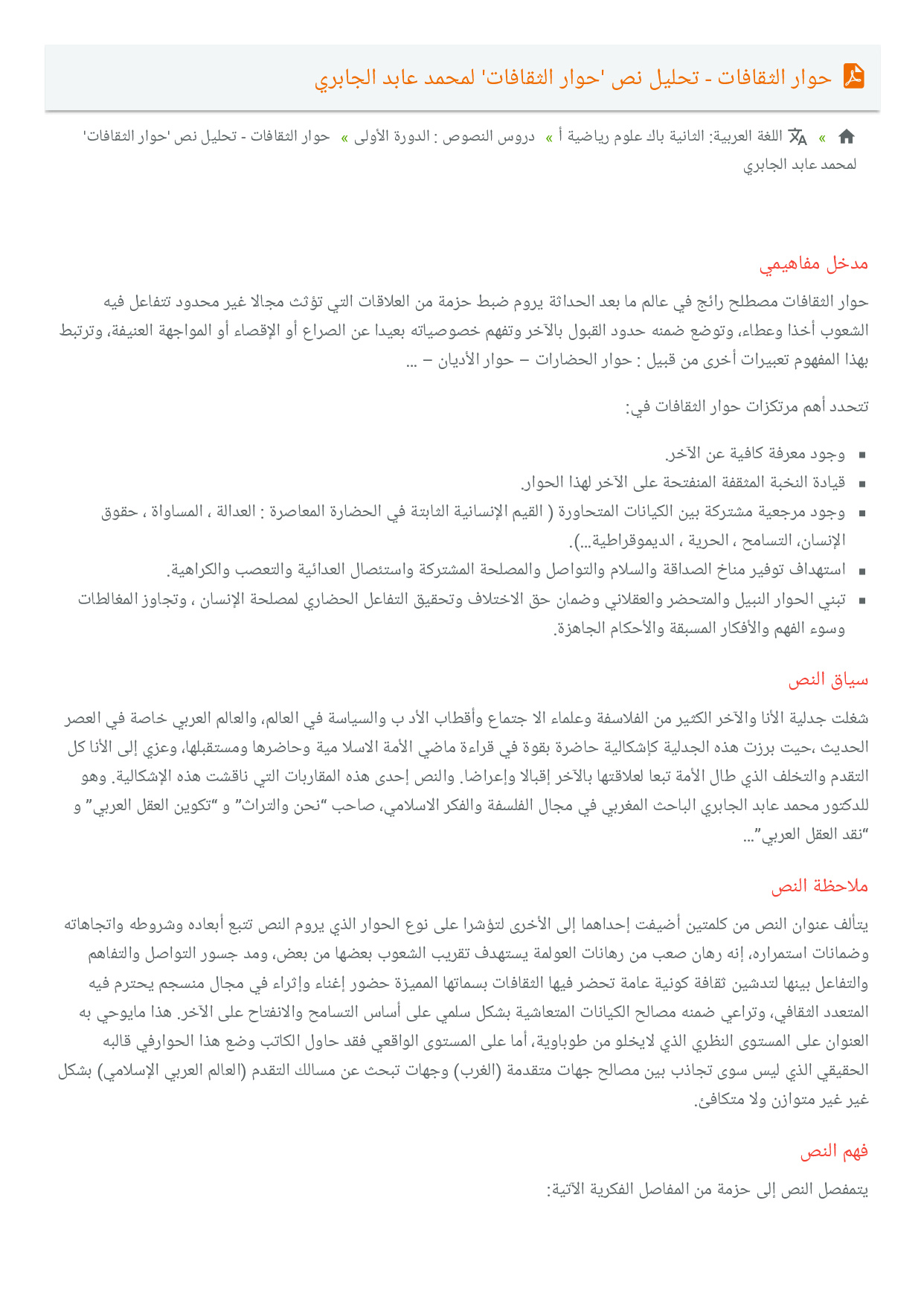 حوار الثقافات - تحليل نص 'حوار الثقافات' لمحمد عابد الجابري
