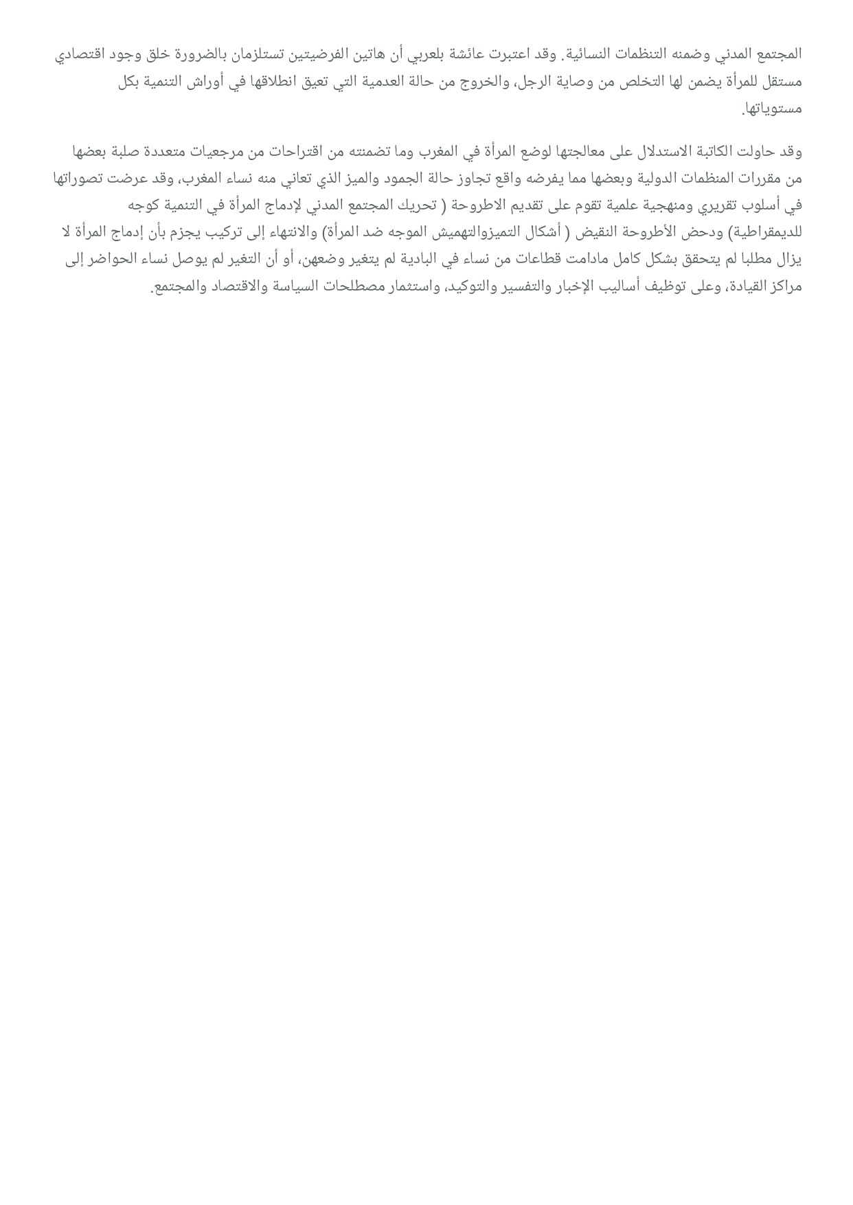 المجتمع المدني - تحليل نص 'المرأة والمجتمع المدني' لعائشة بلعربي
