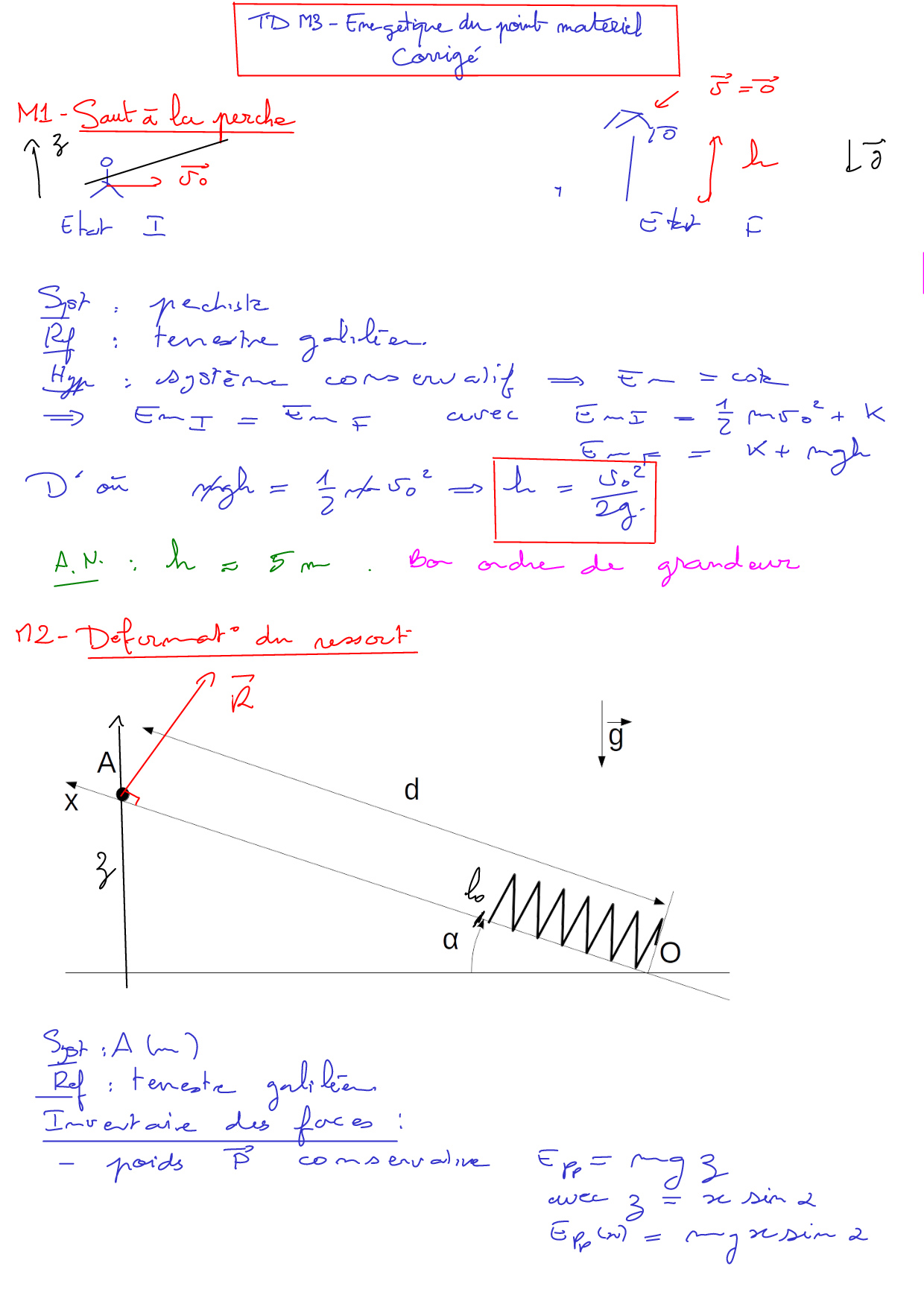 Approche énergétique de la dynamique du point matériel : Corrigés