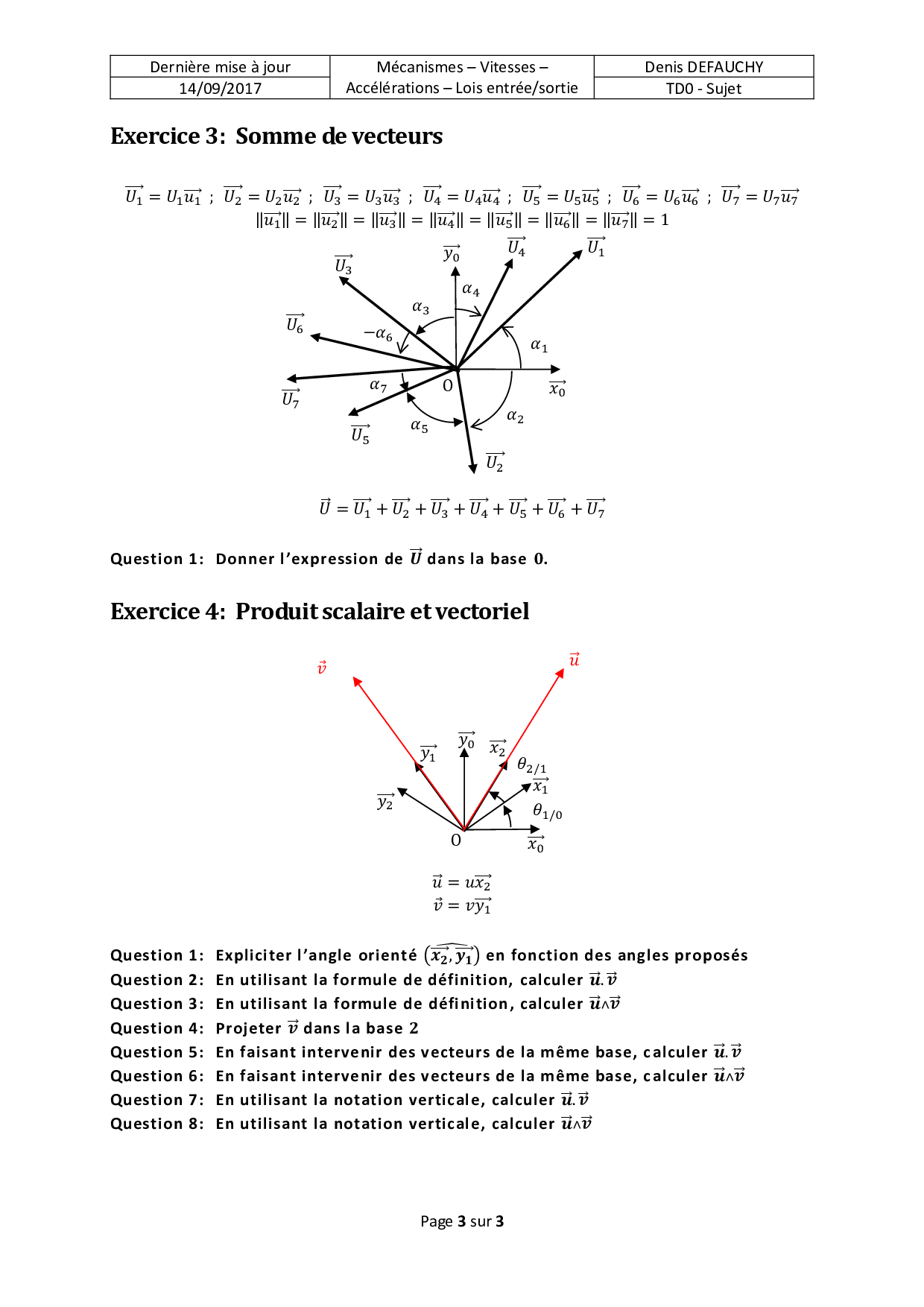 TD0 : Rappels (Projections - Produit scalaire, vectoriel)