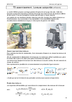 Asservissement - Laveuse autoportée : Enoncé