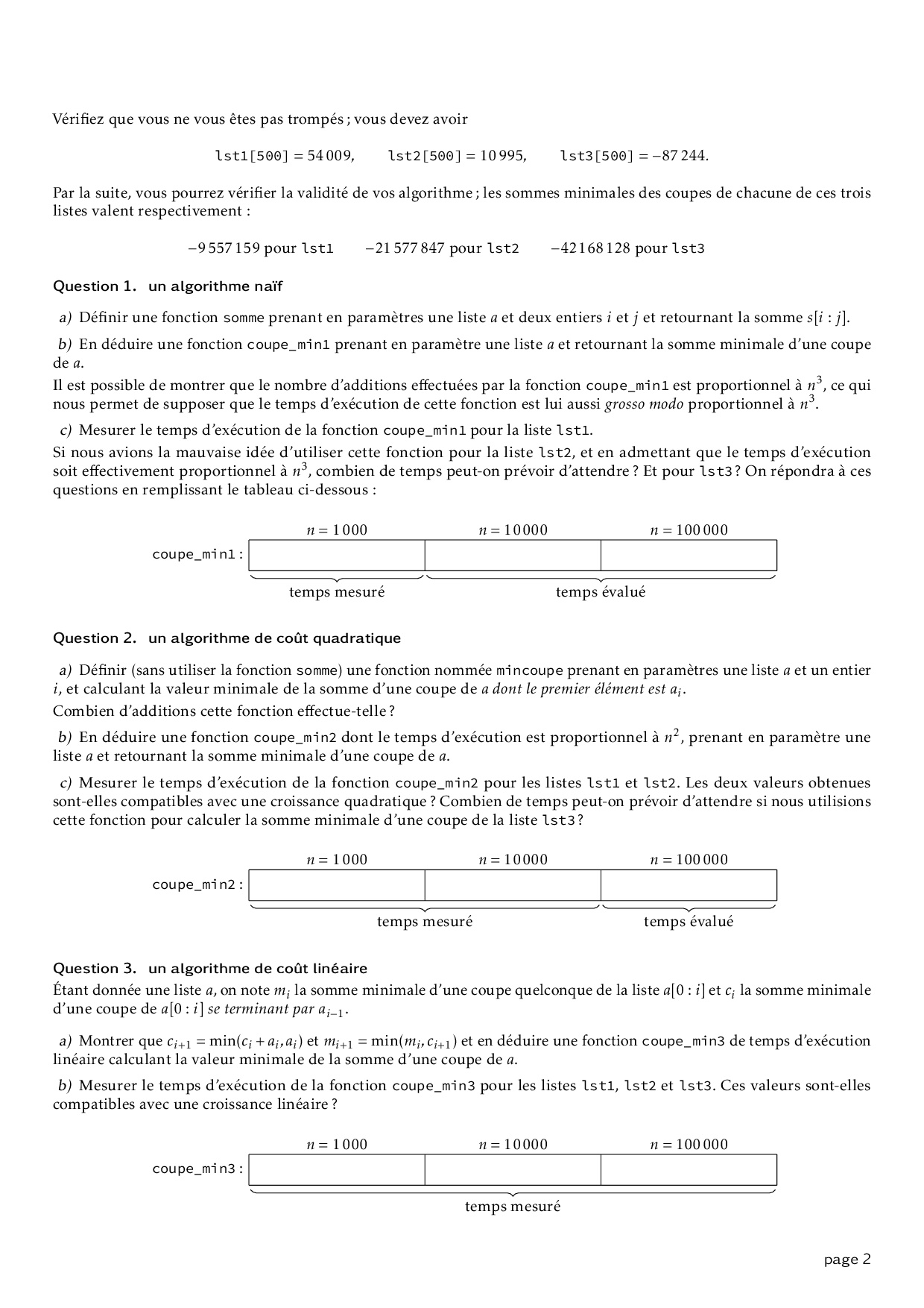 Série 6 - Étude pratique de la complexité algorithmique : Exercices