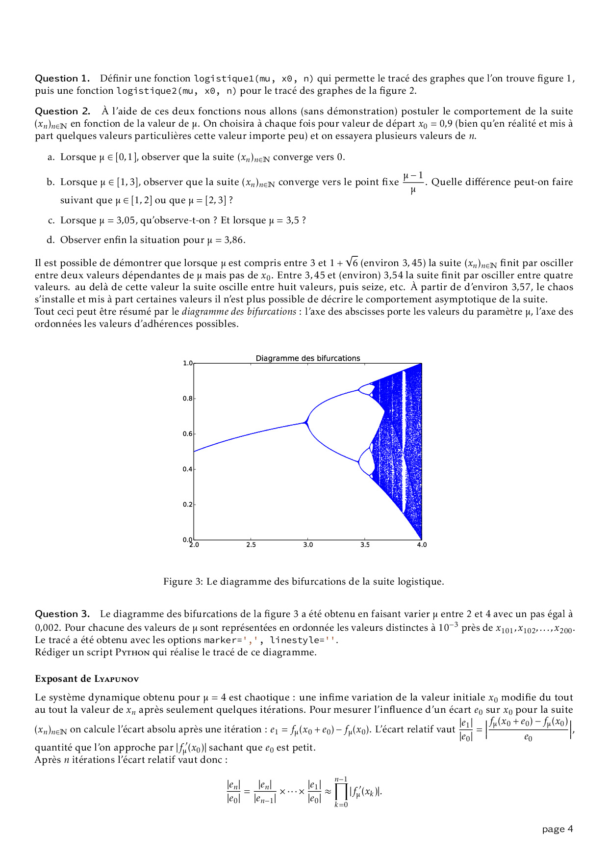 Série 7 - Étude de la suite logistique : Exercices