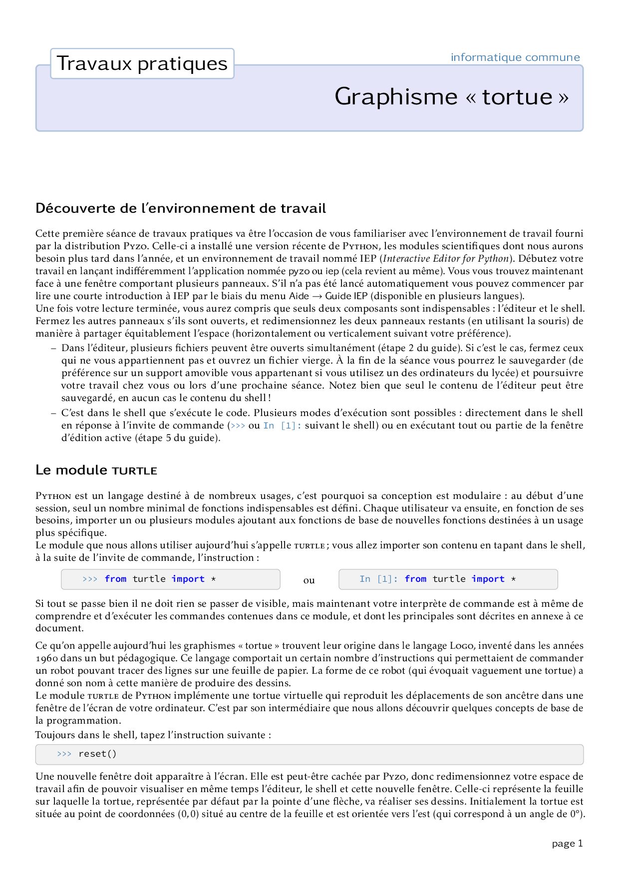 Série 1 - Graphismes «tortue» : Exercices