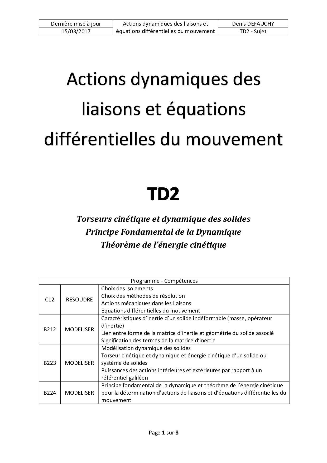 TD2 : Torseurs cinétique et dynamique des solides (Plaque vibrante)