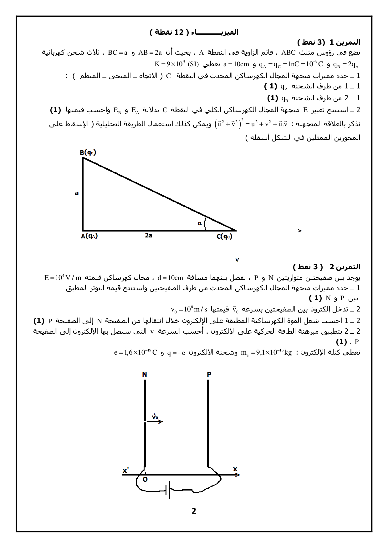 الفرض 1 نموذج 4 - الفيزياء والكيمياء أولى باك علوم تجريبية الدورة الثانية