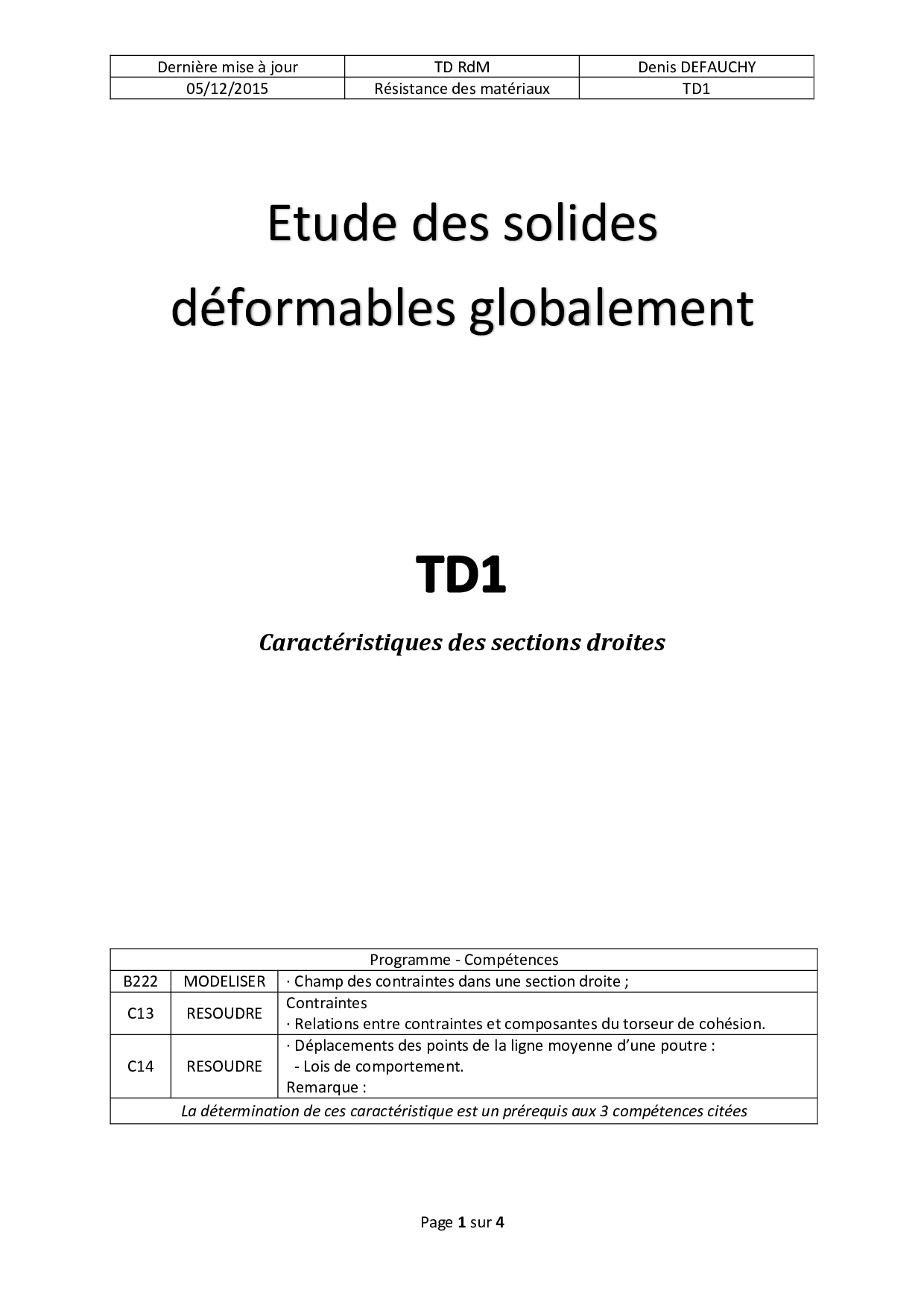 TD1 : Caractéristiques des sections droites (Manivelle VTT)