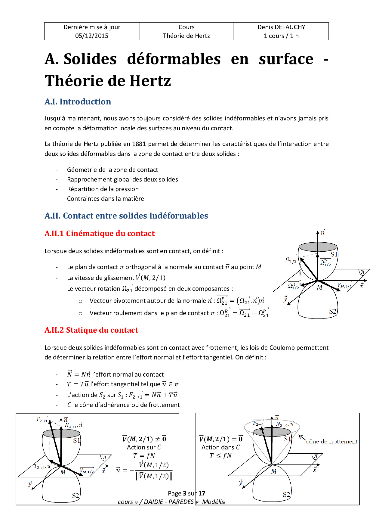 Cours complet : Solides déformables en surface - Théorie de Hertz