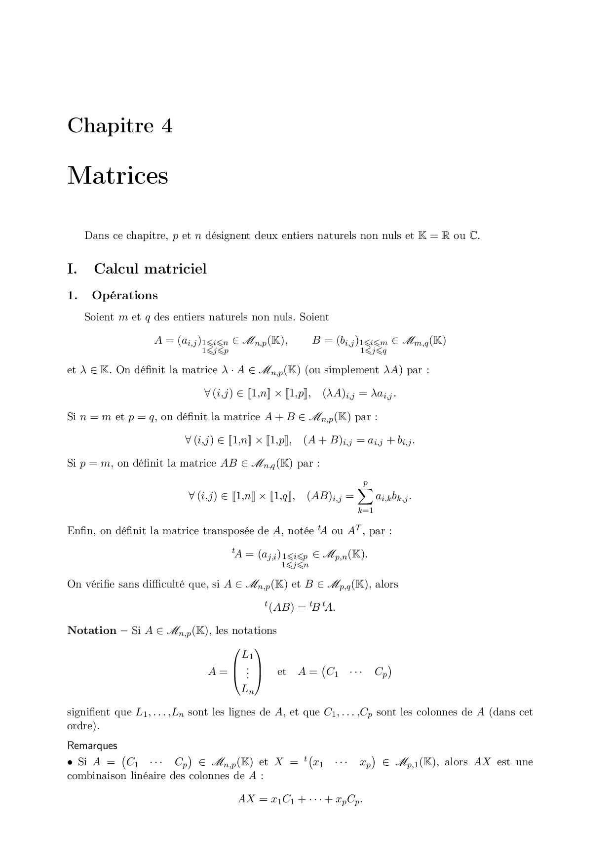 Les matrices : Cours