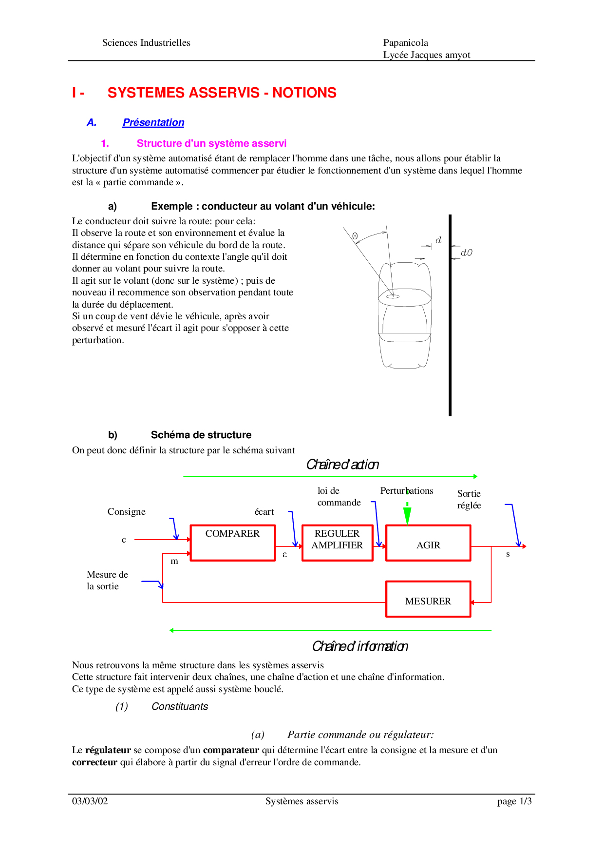 1) Notions de système asservi