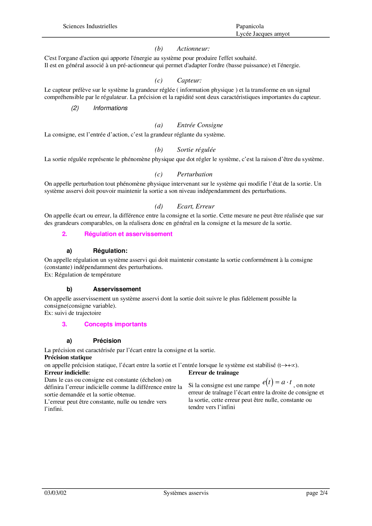 Cours Asservissement