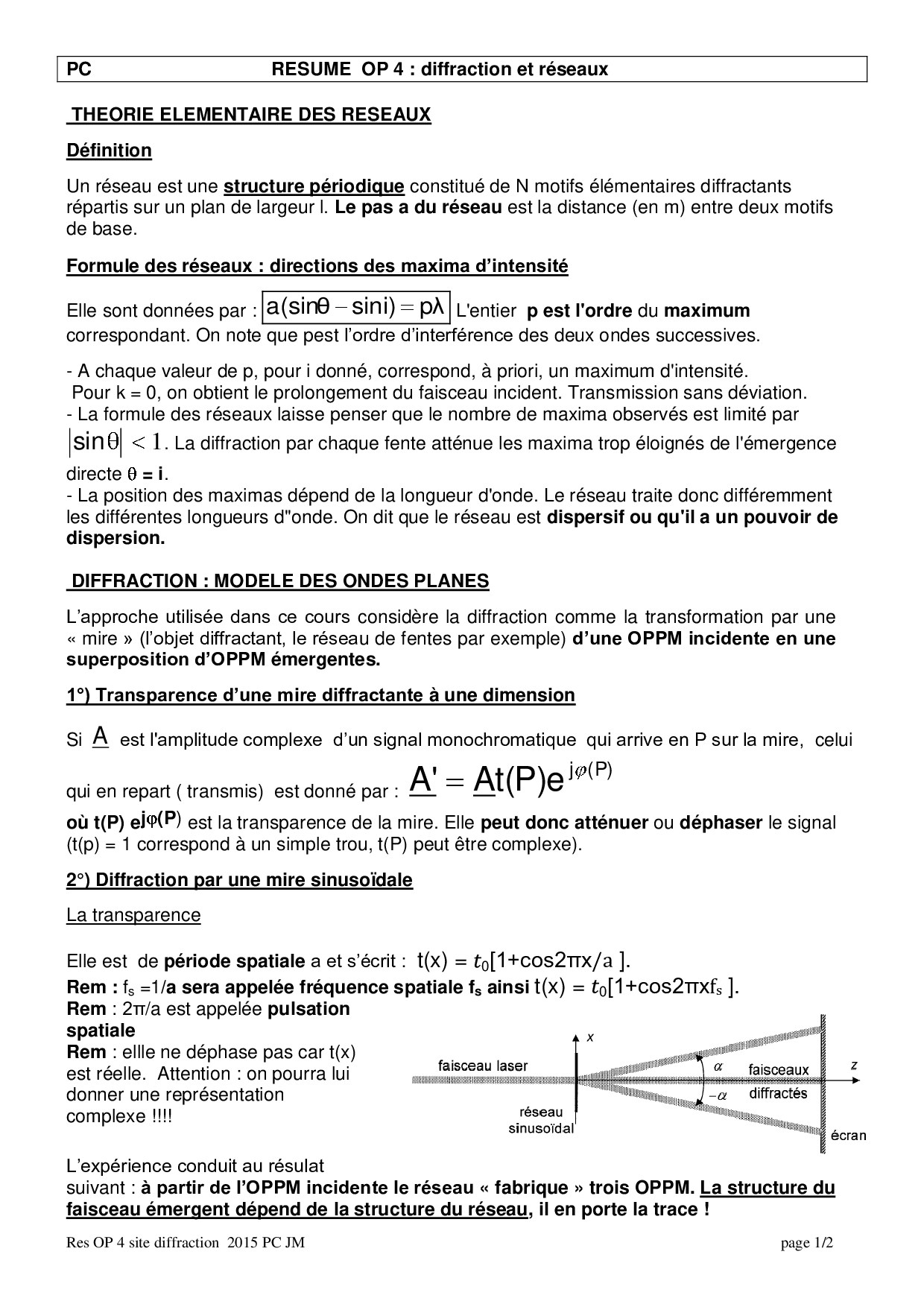 Résumé Optique physique 4 : Diffraction et réseaux
