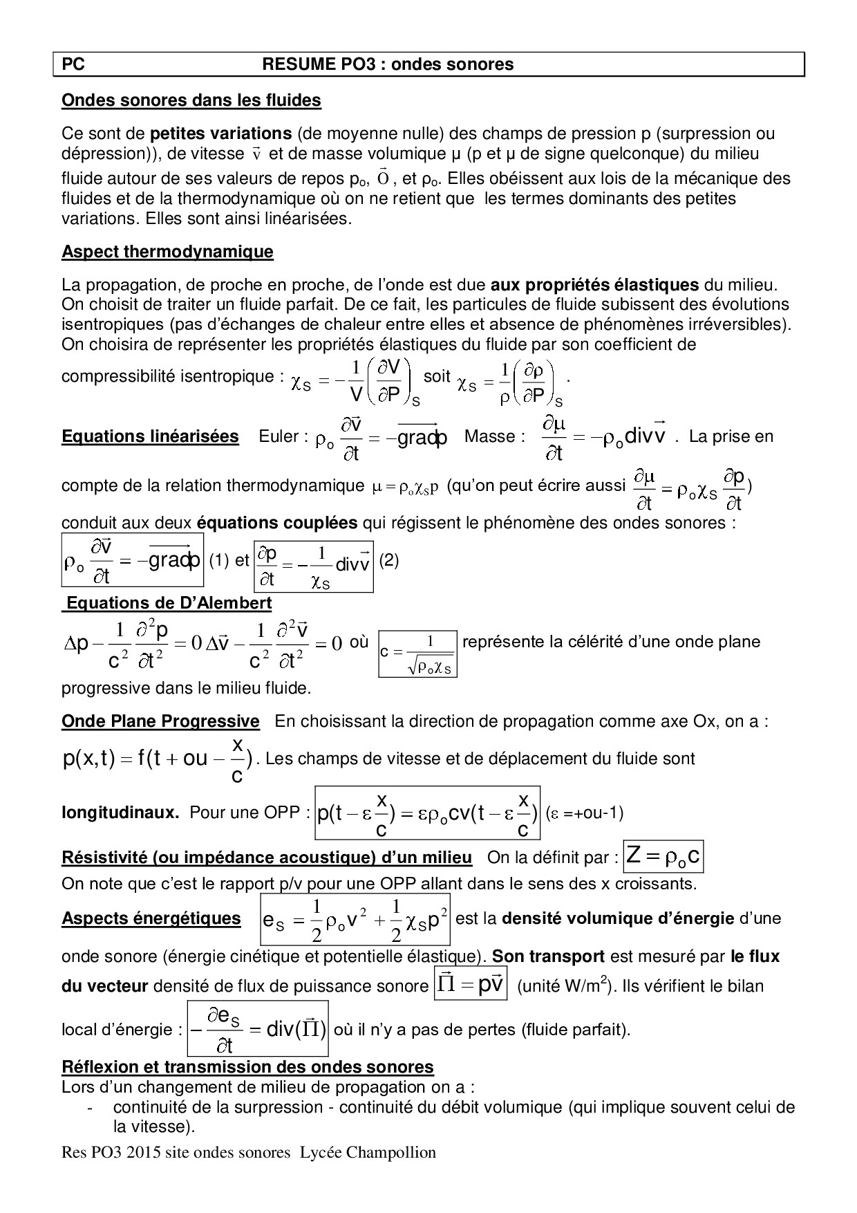 Résumé physique des ondes 3 : Ondes sonores