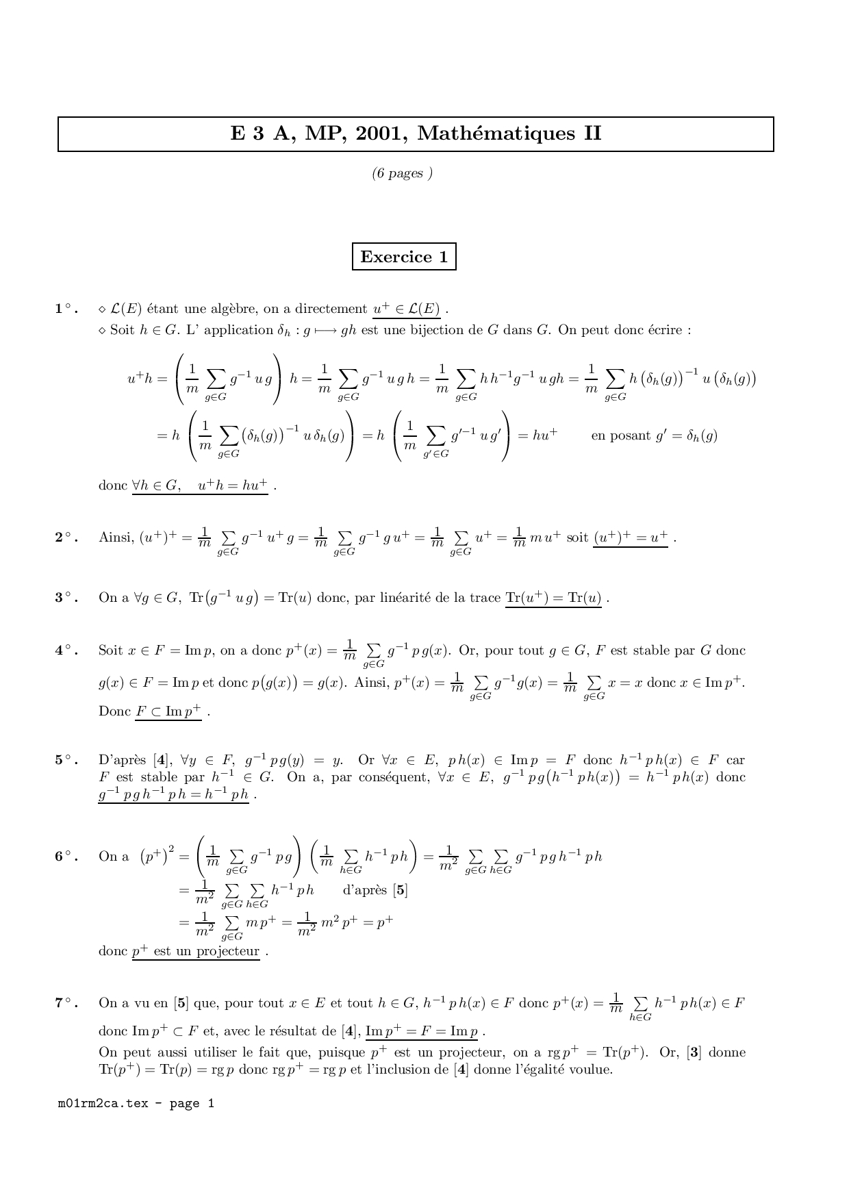 E3A MP 2001 Maths 2 Corrigé
