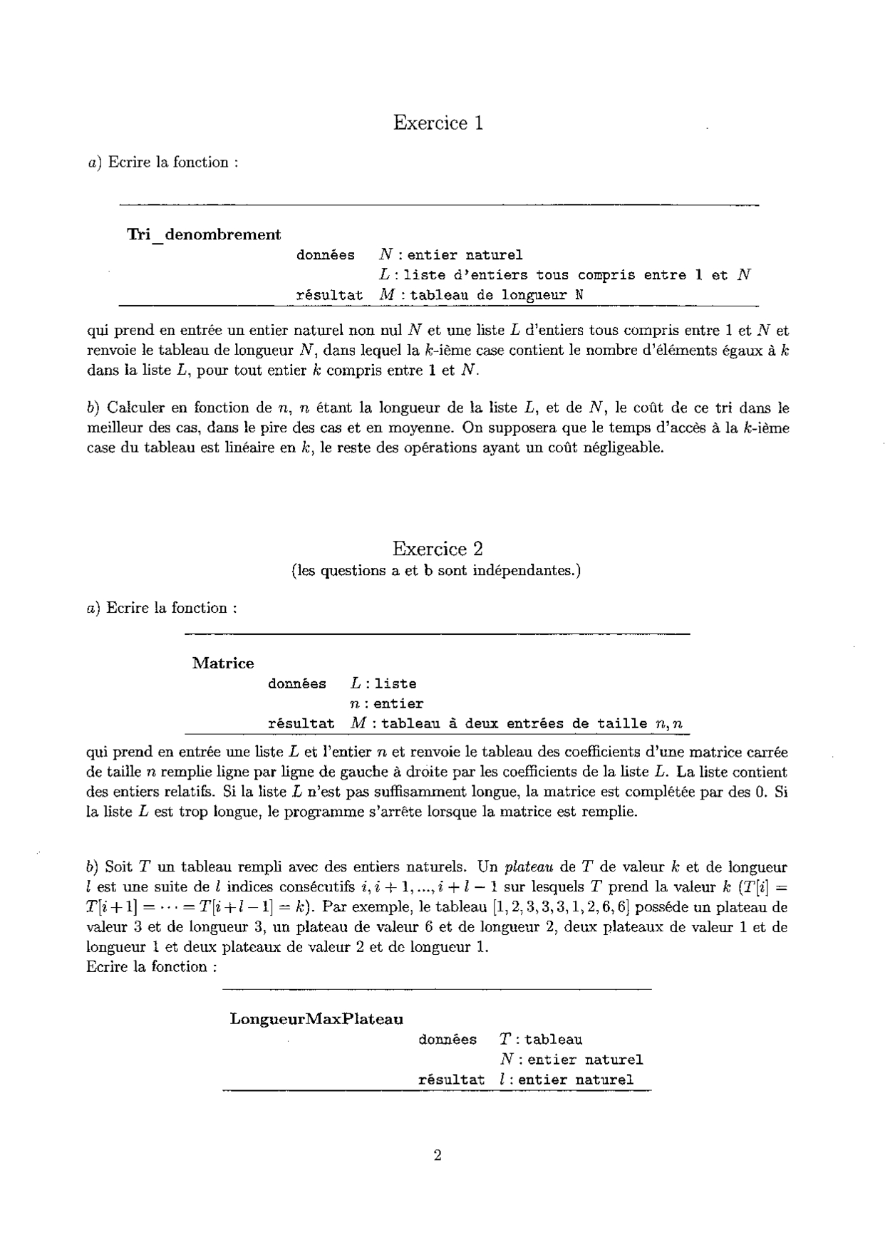 E3A MP 2008 Informatique Epreuve