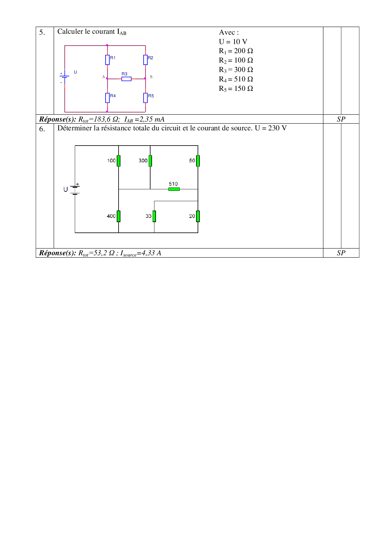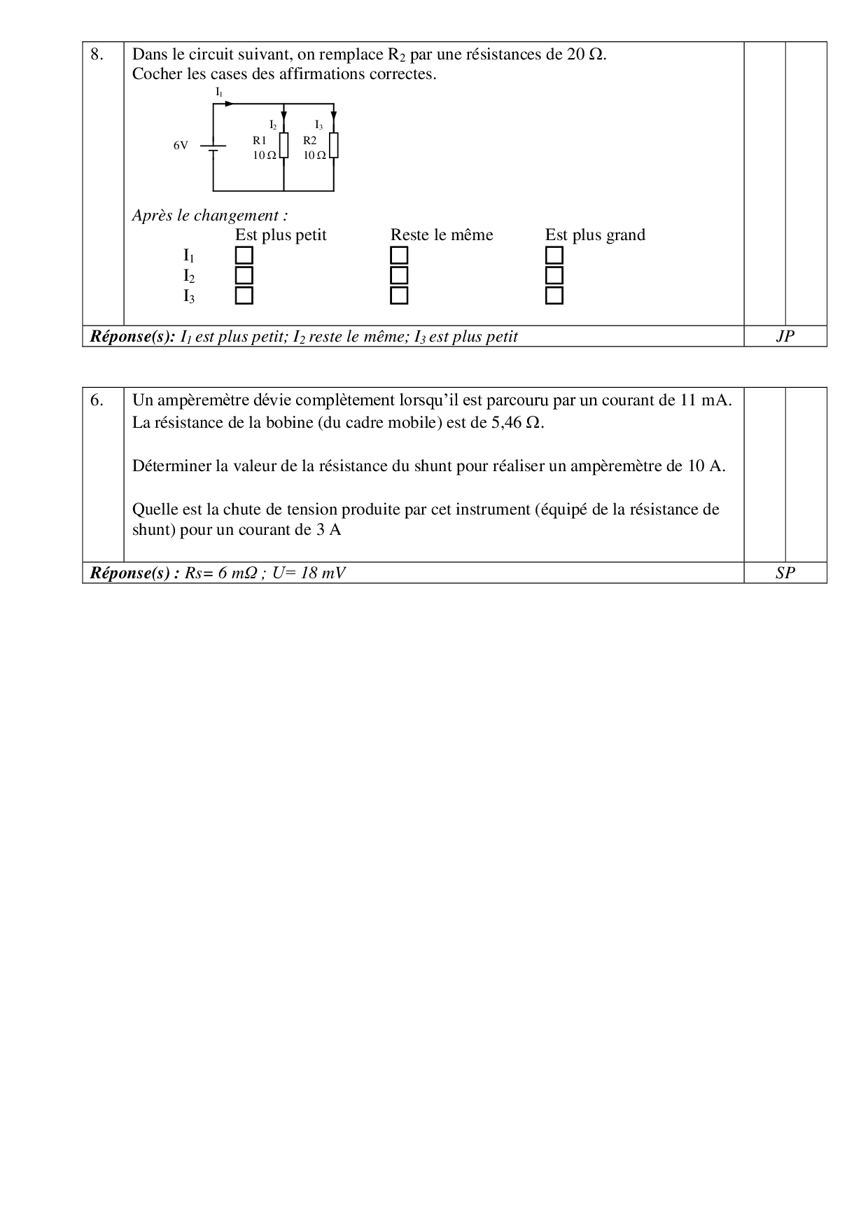 Grandeurs électriques - Exercices corrigés