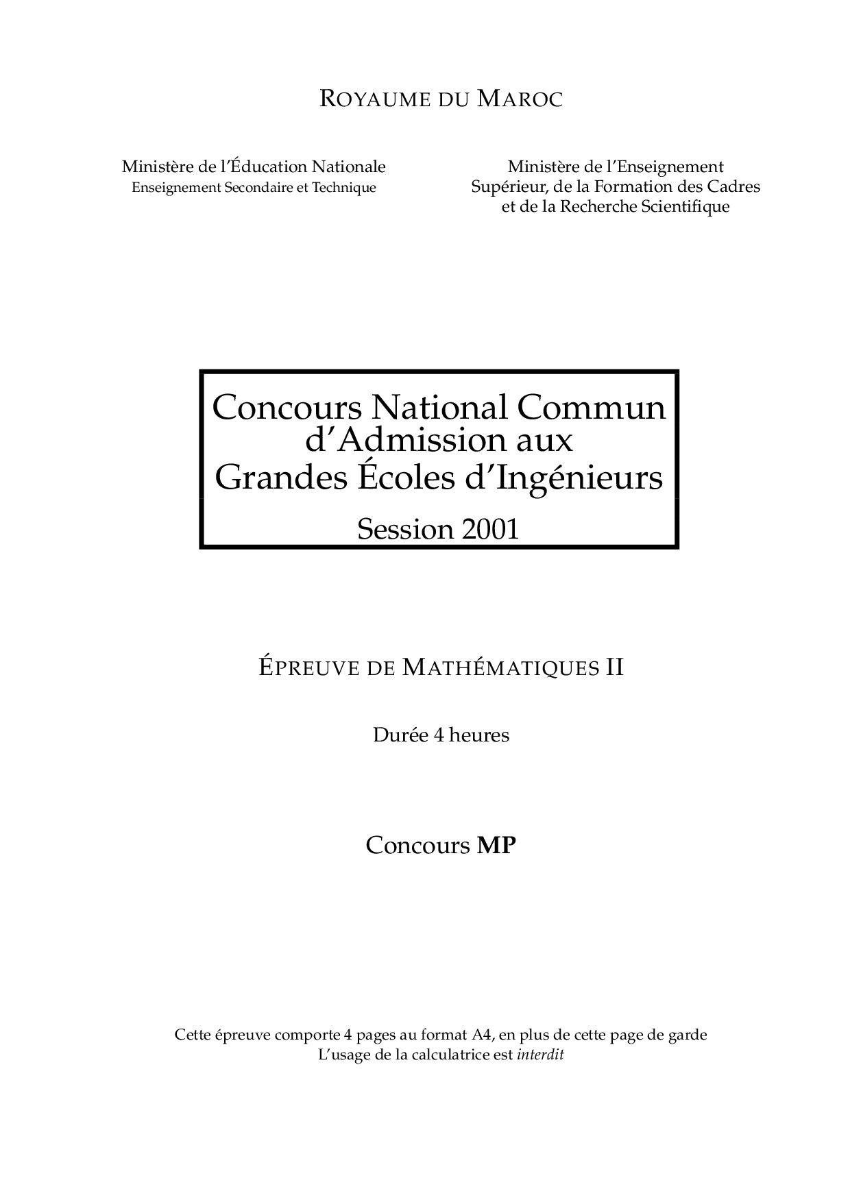 CNC MP 2001 Maths 2 Epreuve