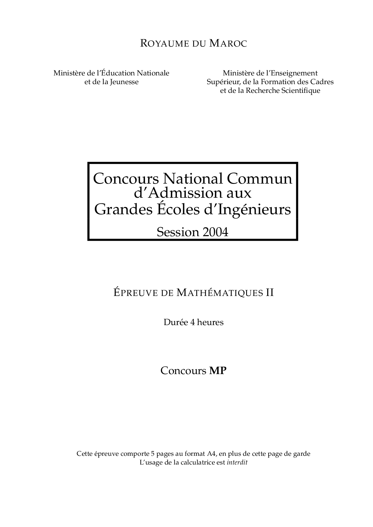 CNC MP 2004 Maths 2 Epreuve
