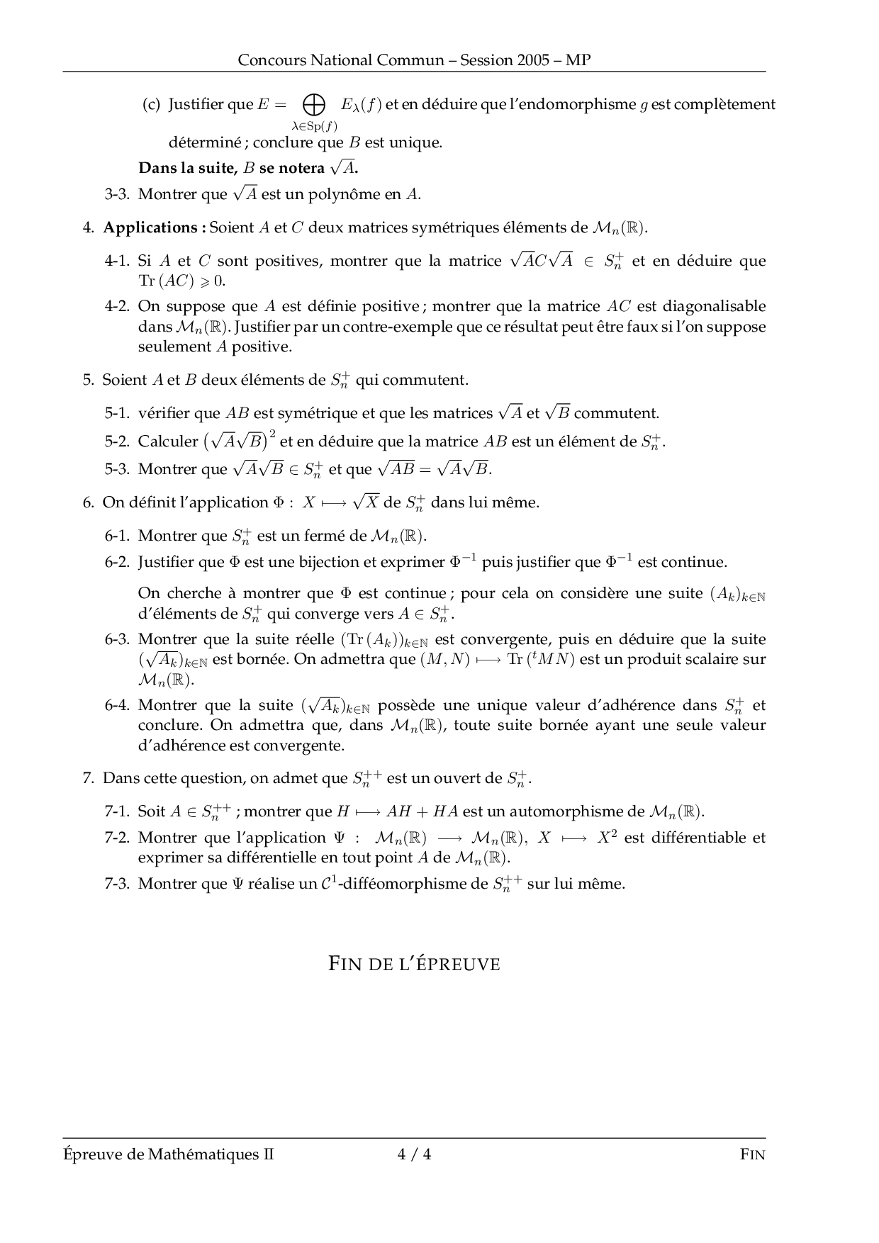 CNC MP 2005 Maths 2 Epreuve
