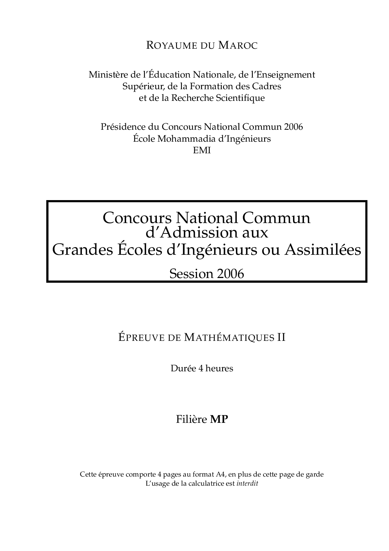 CNC MP 2006 Maths 2 Epreuve