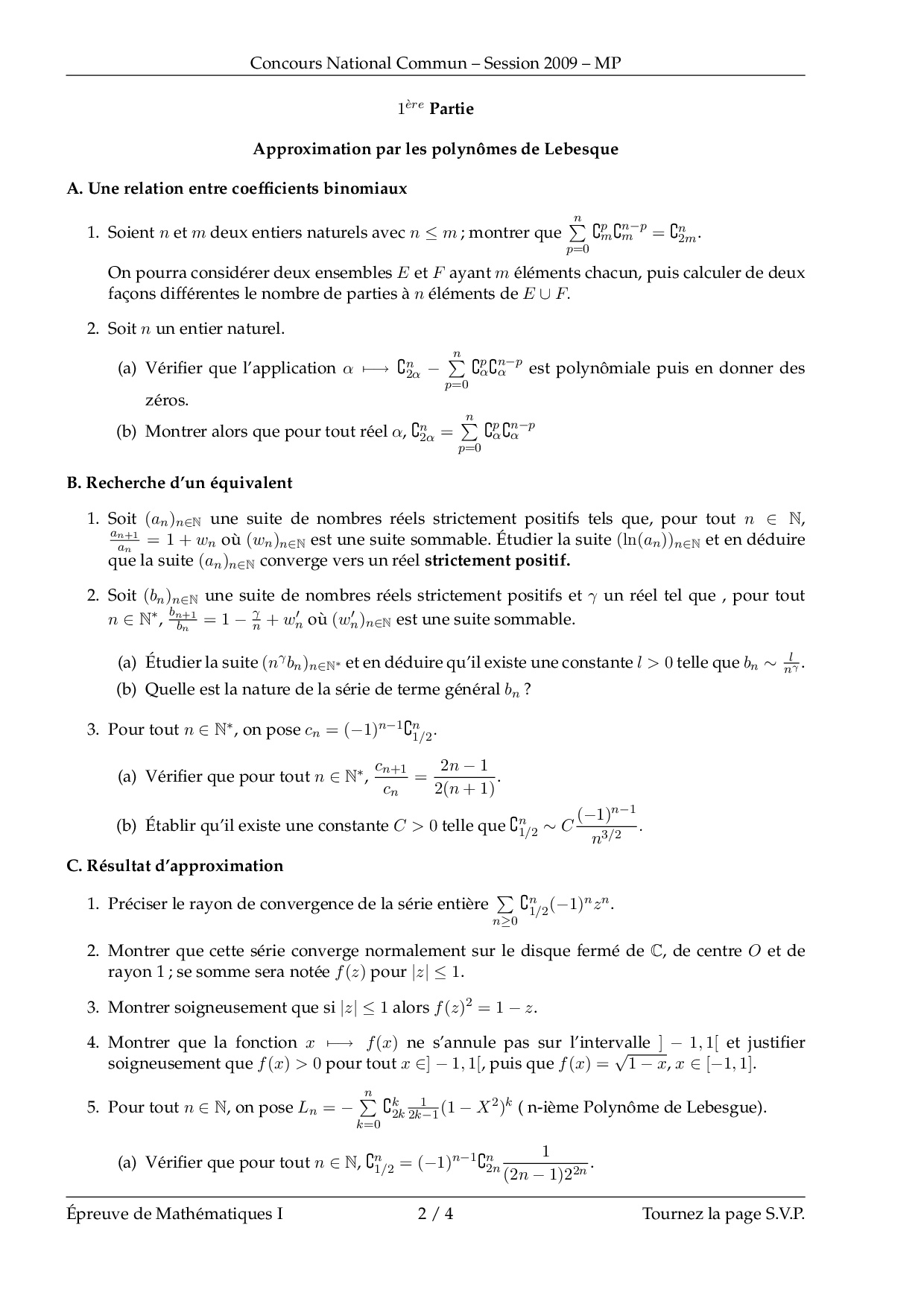 CNC MP 2009 Maths 1 Epreuve