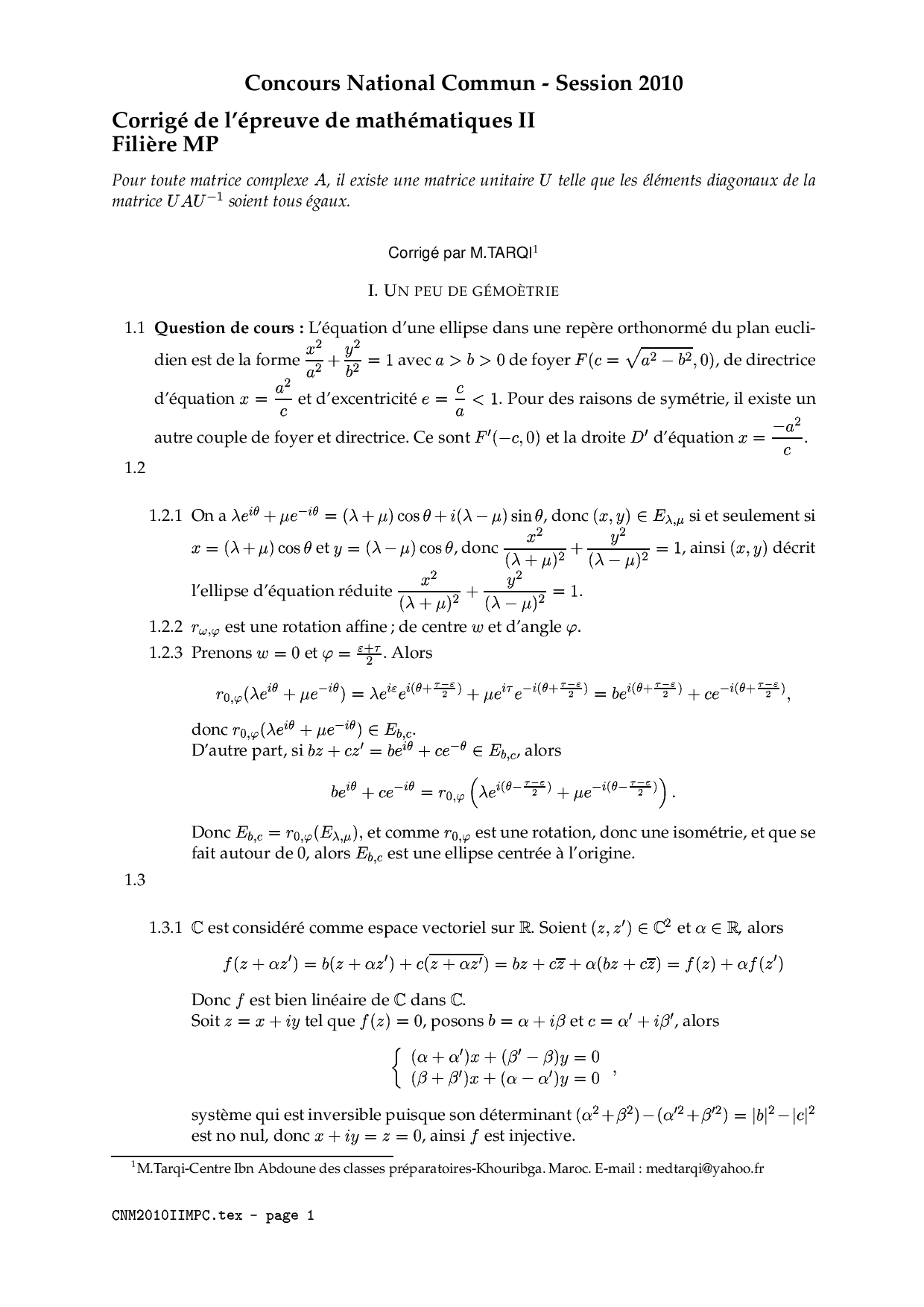 CNC MP 2010 Maths 2 Corrigé