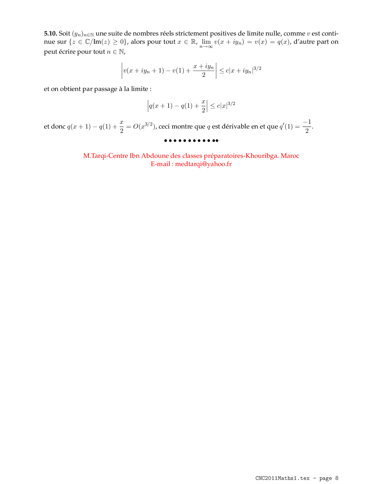 CNC MP 2011 Maths 1 Corrigé