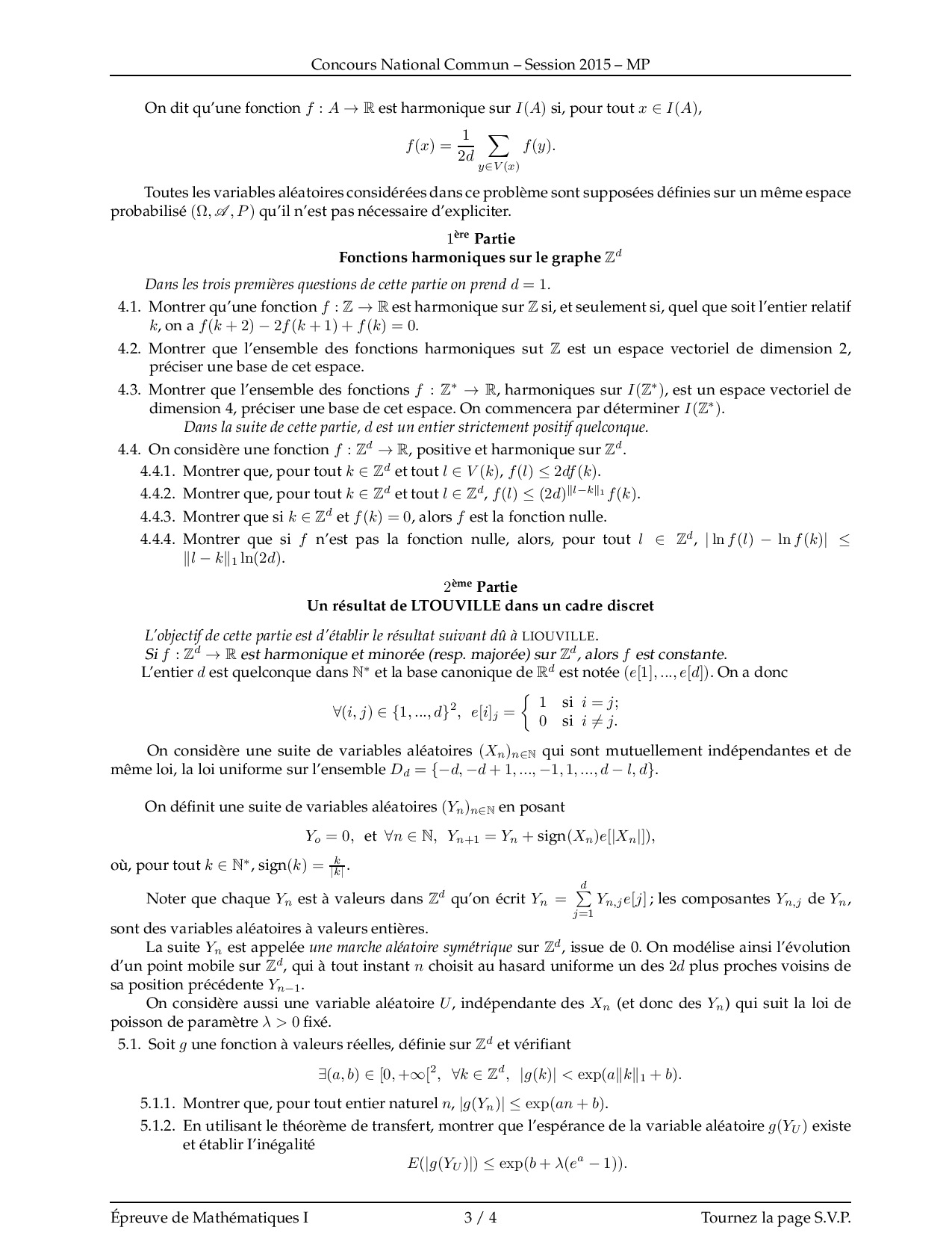 CNC MP 2015 Maths 1 Epreuve