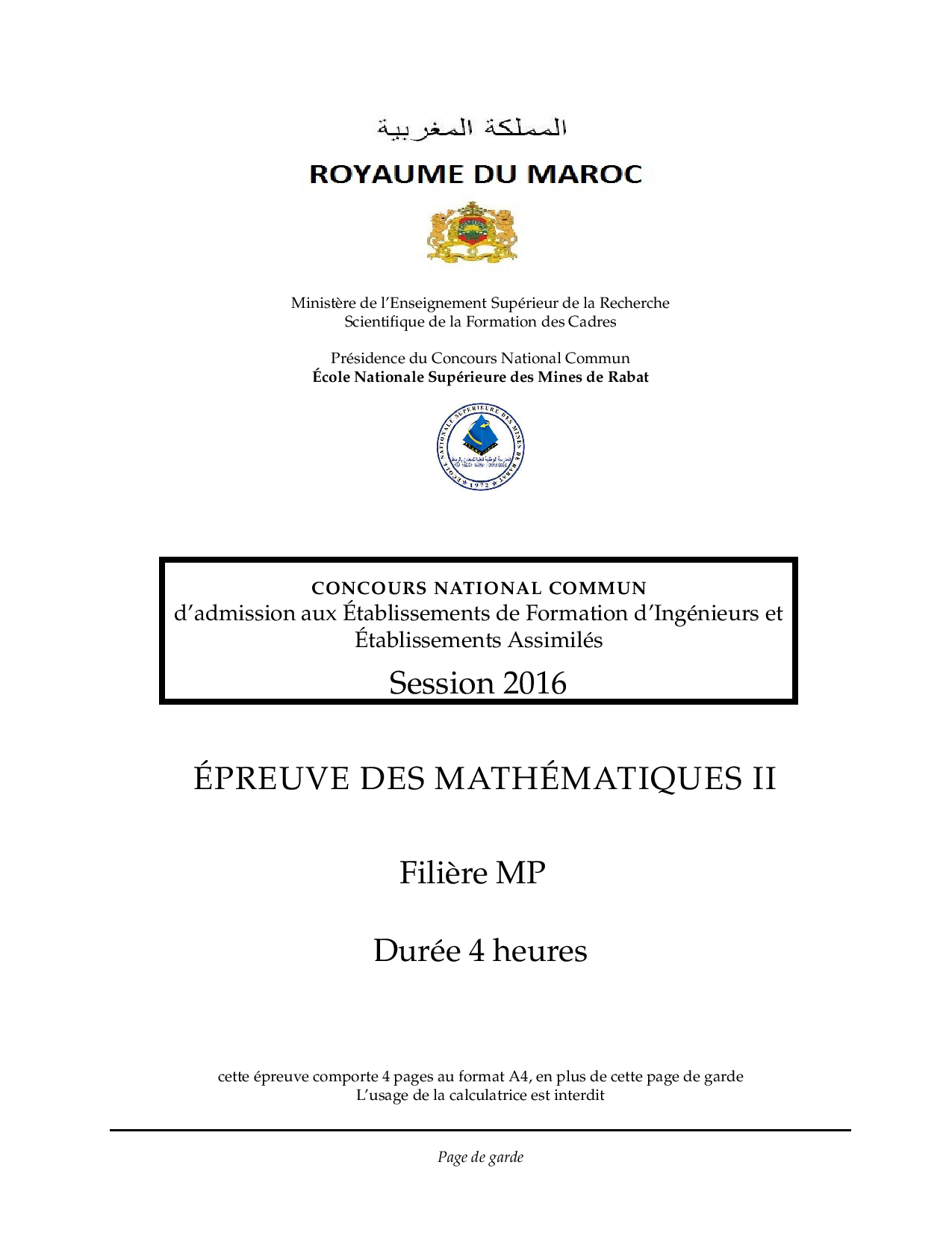 CNC MP 2016 Maths 2 Epreuve