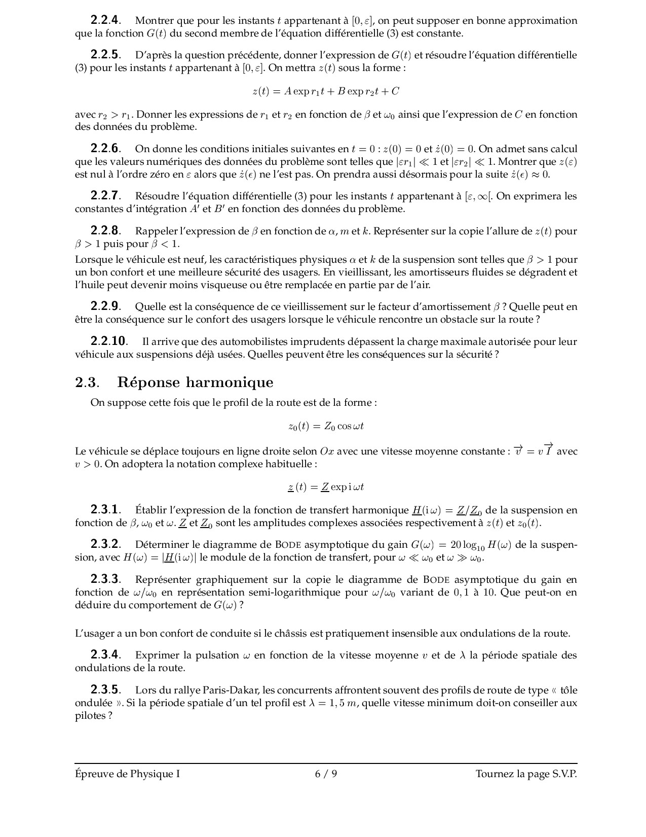 CNC MP 2000 Physique 1 Epreuve