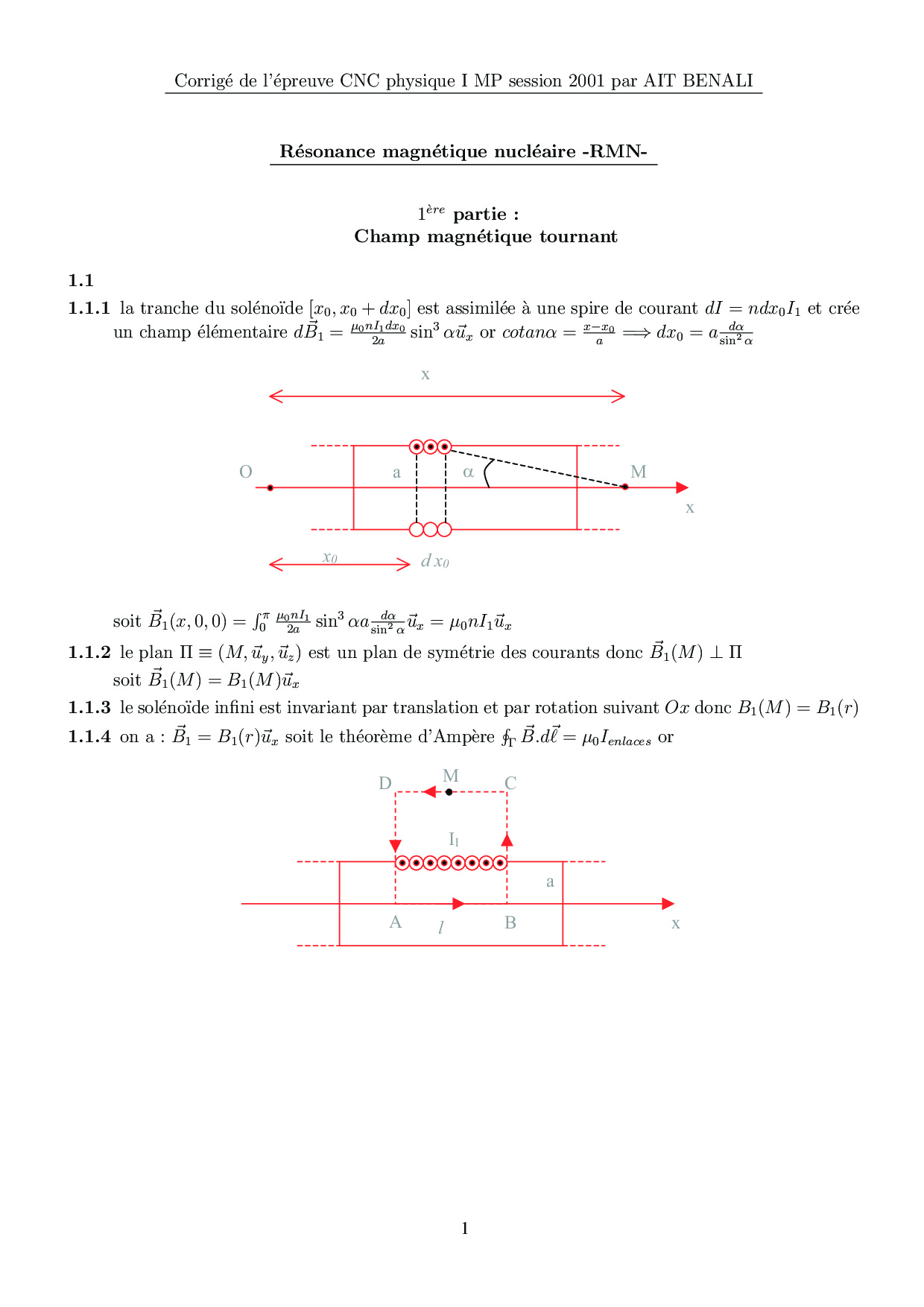 CNC MP 2001 Physique 1 Corrigé