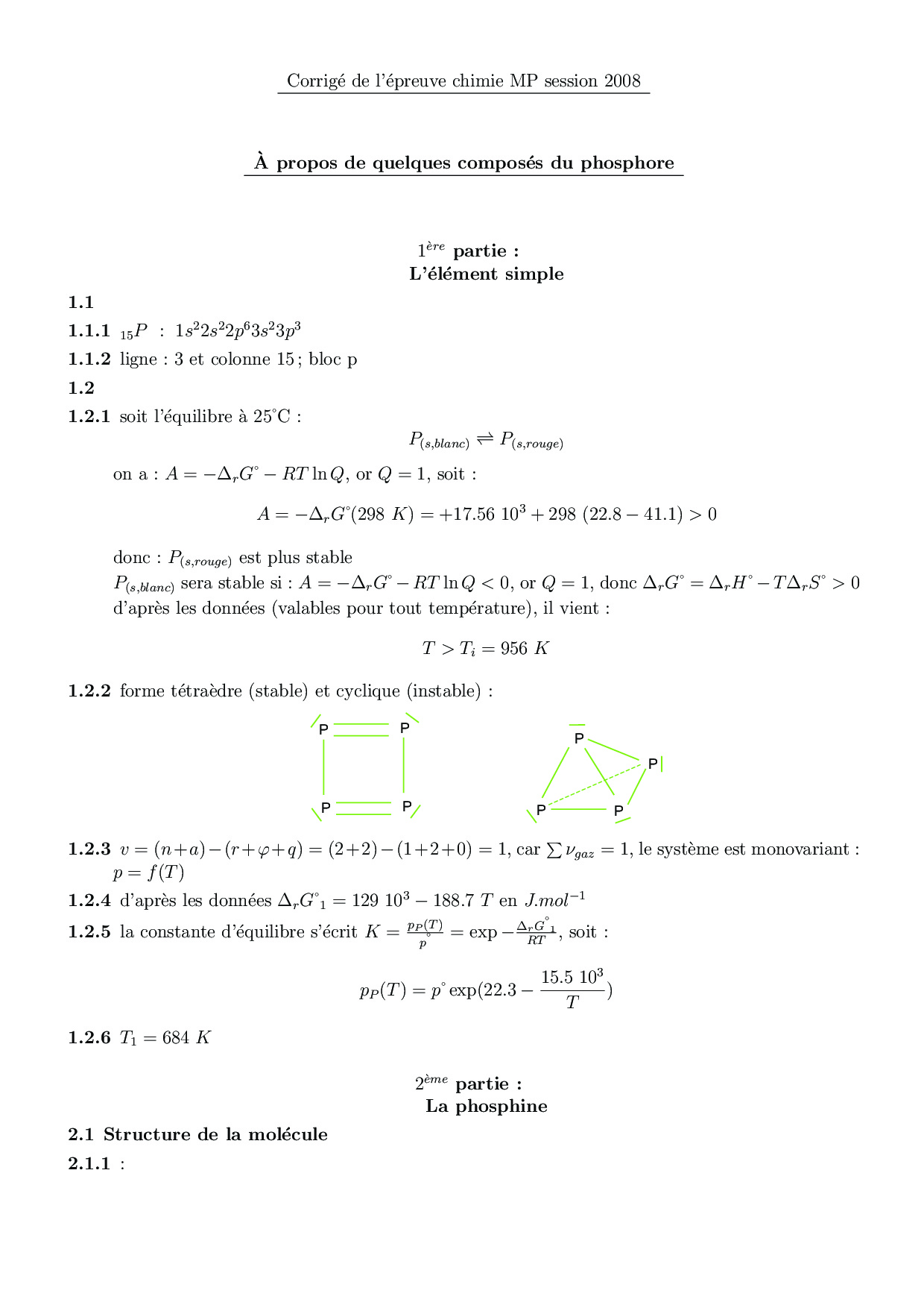 CNC MP 2008 Chimie Corrigé