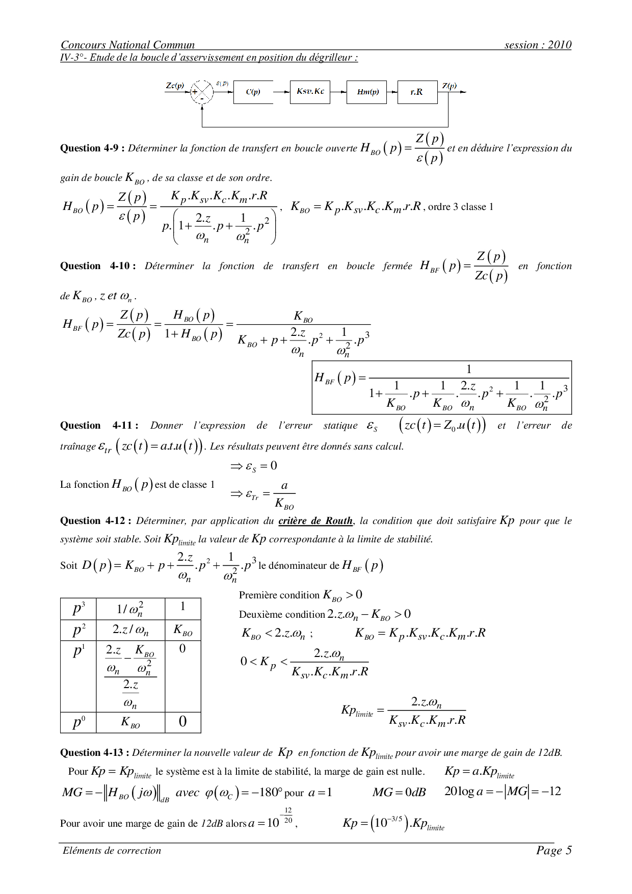 CNC MP 2010 SII Corrigé