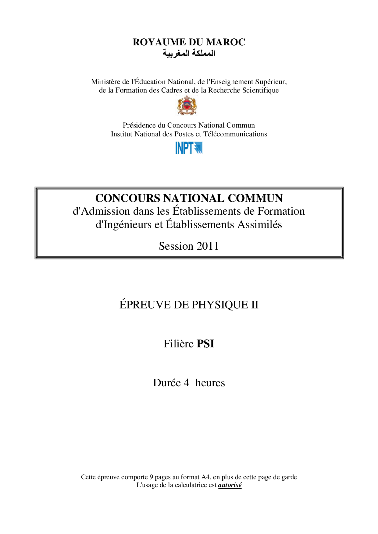 CNC PSI 2011 physique 2 Epreuve
