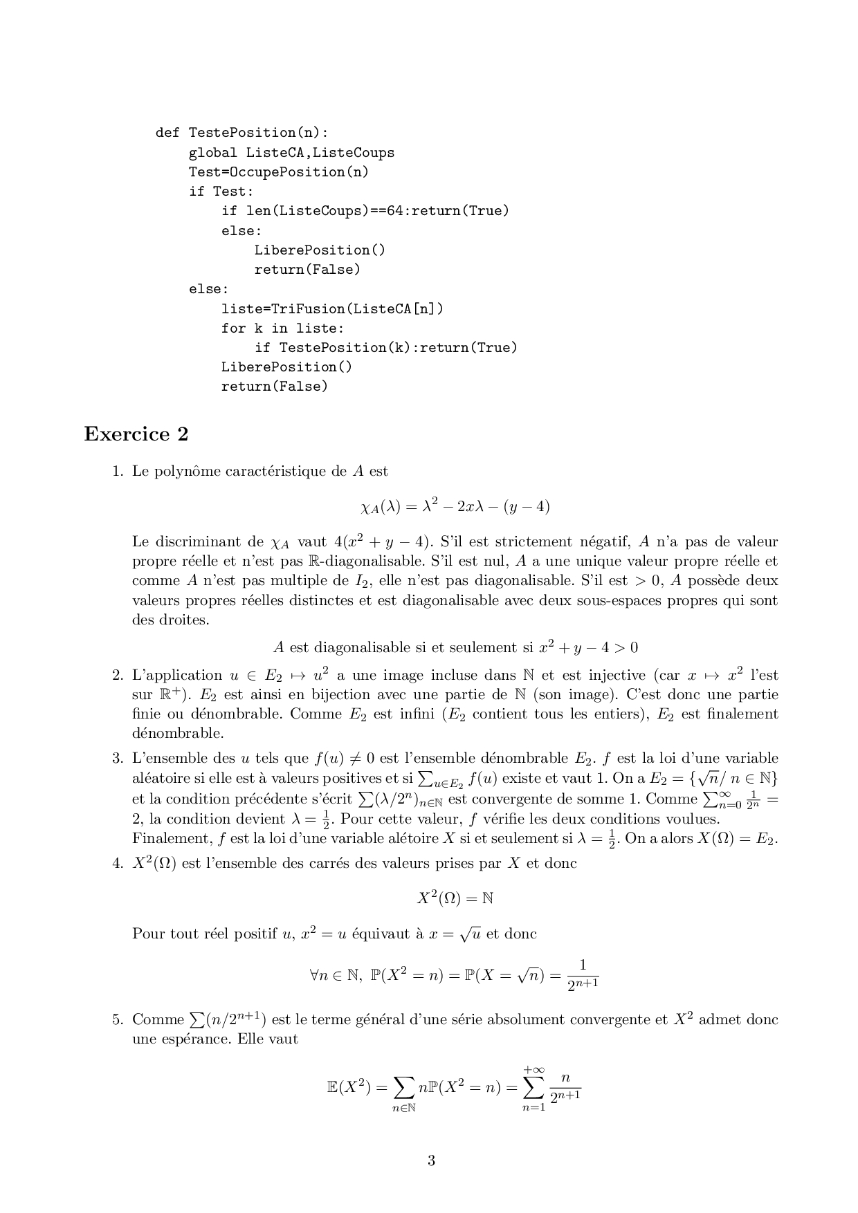 E3A PSI 2015 Maths 1 Corrigé