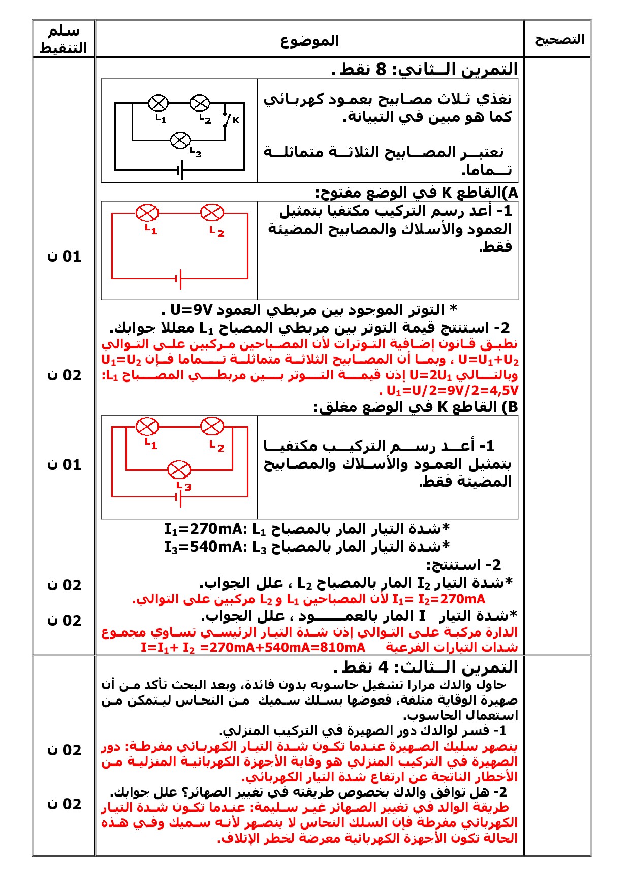 الفرض 2 نموذج 1 - الفيزياء والكيمياء أولى إعدادي الدورة الثانية (التصحيح)