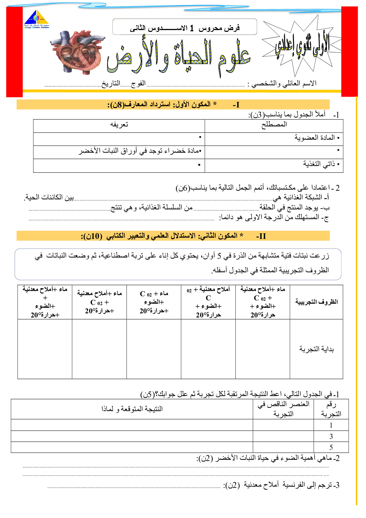 الفرض 1 نموذج 4 - علوم الحياة والارض أولى إعدادي الدورة الثانية