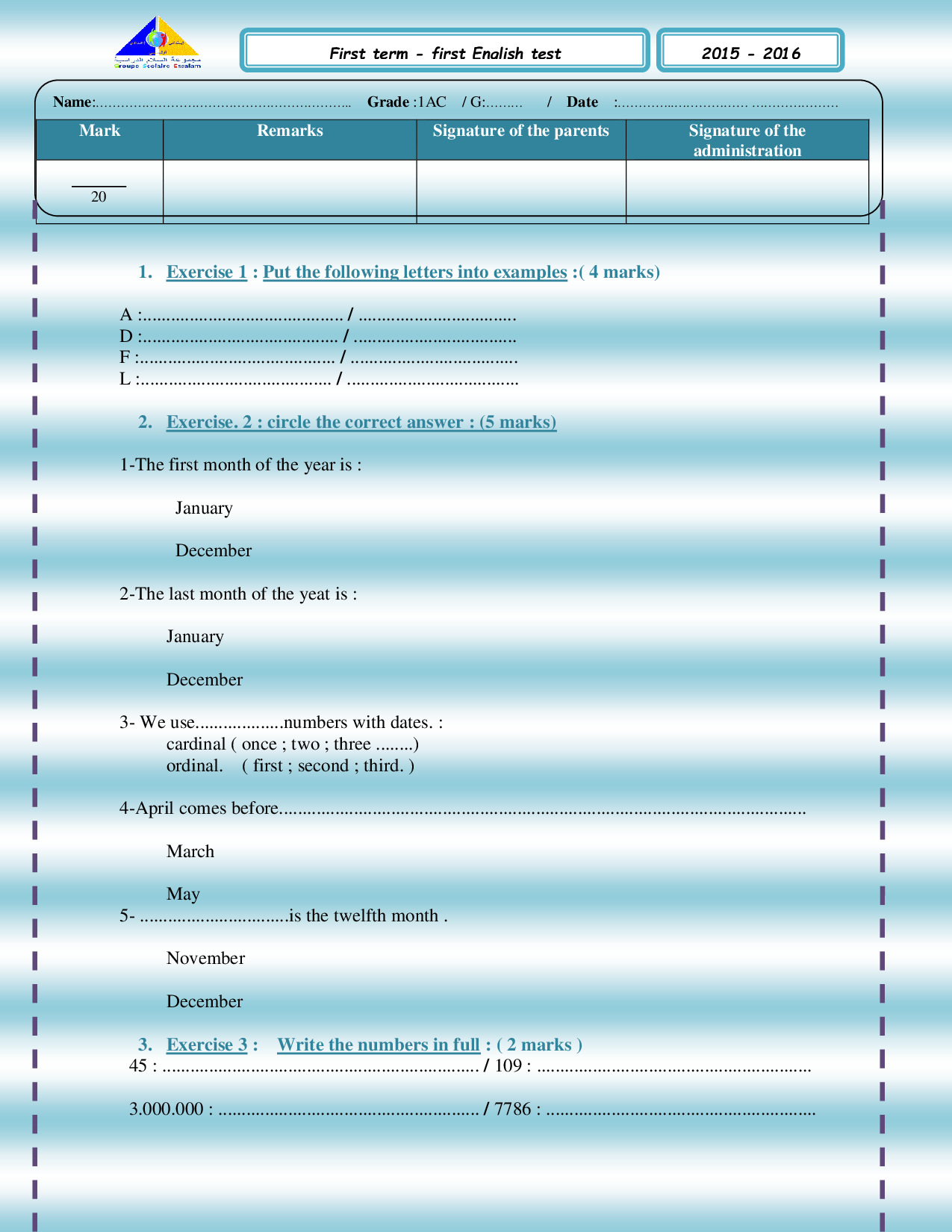 First term english tests