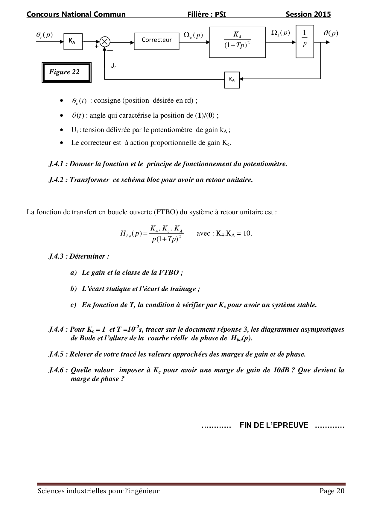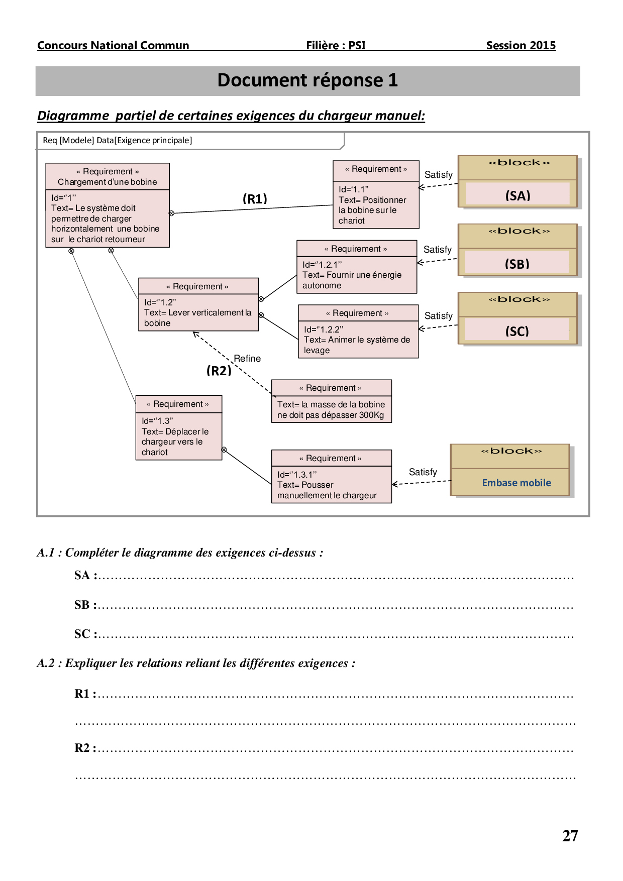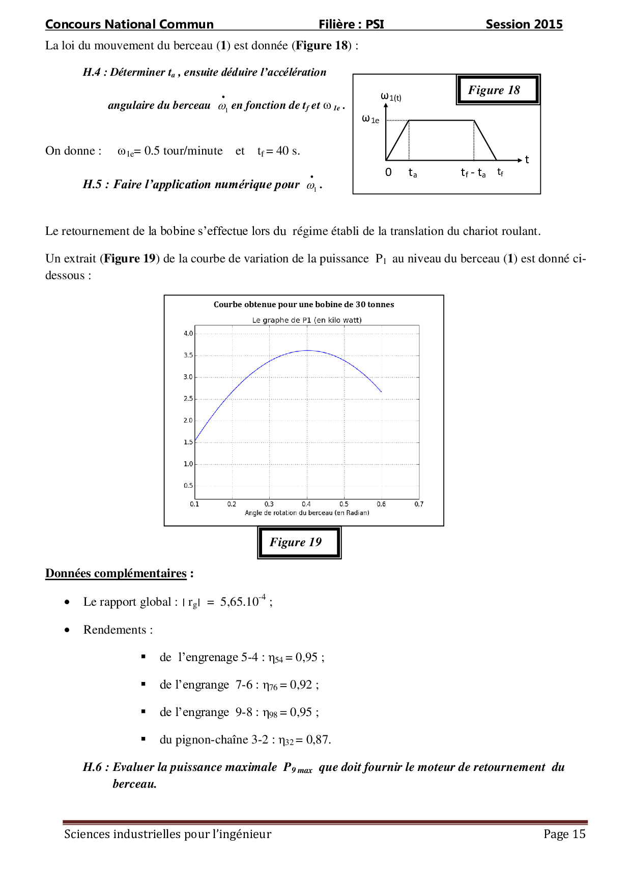 CNC PSI 2015 SII - Sujet