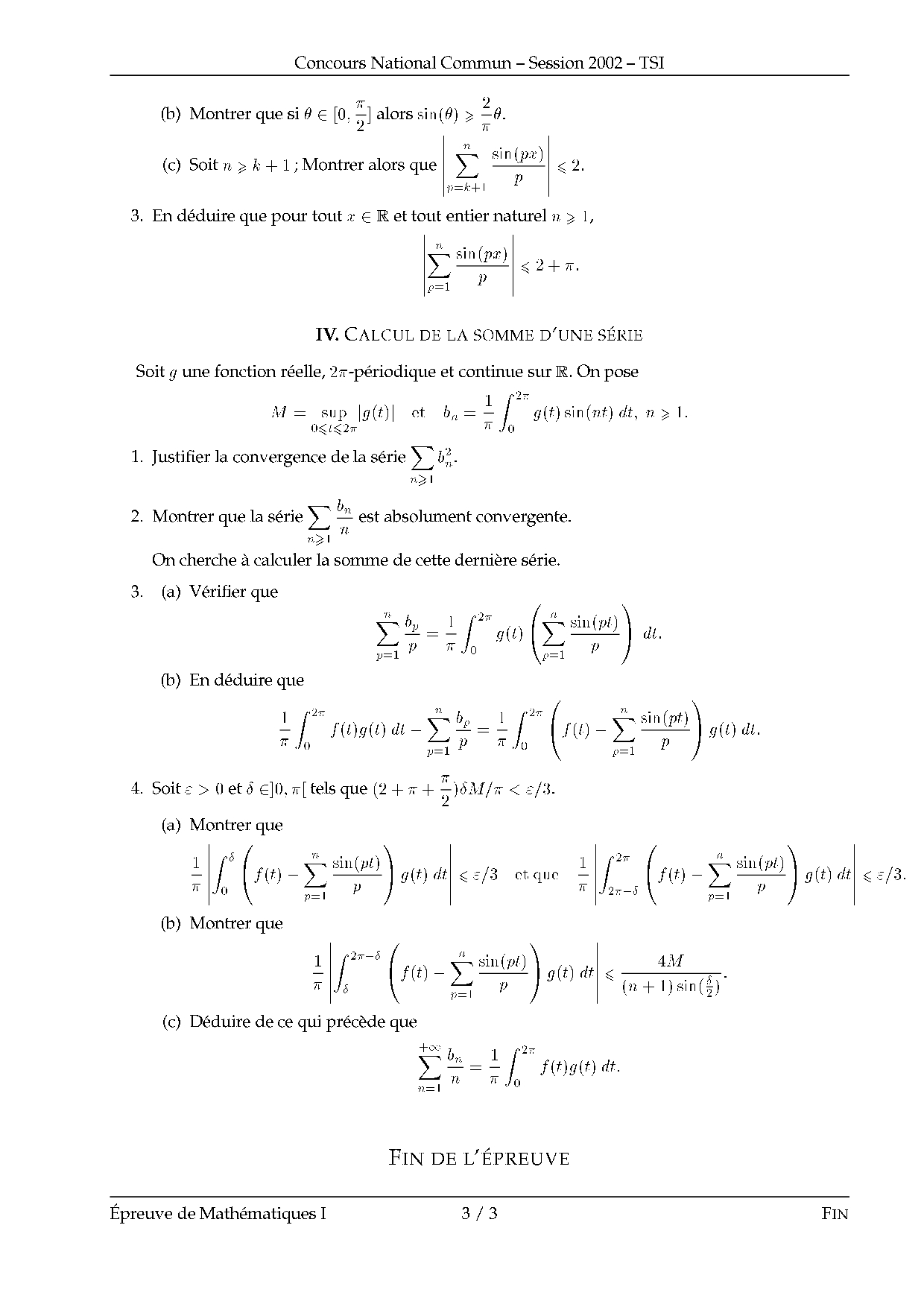 CNC TSI 2002 Maths 1 Epreuve