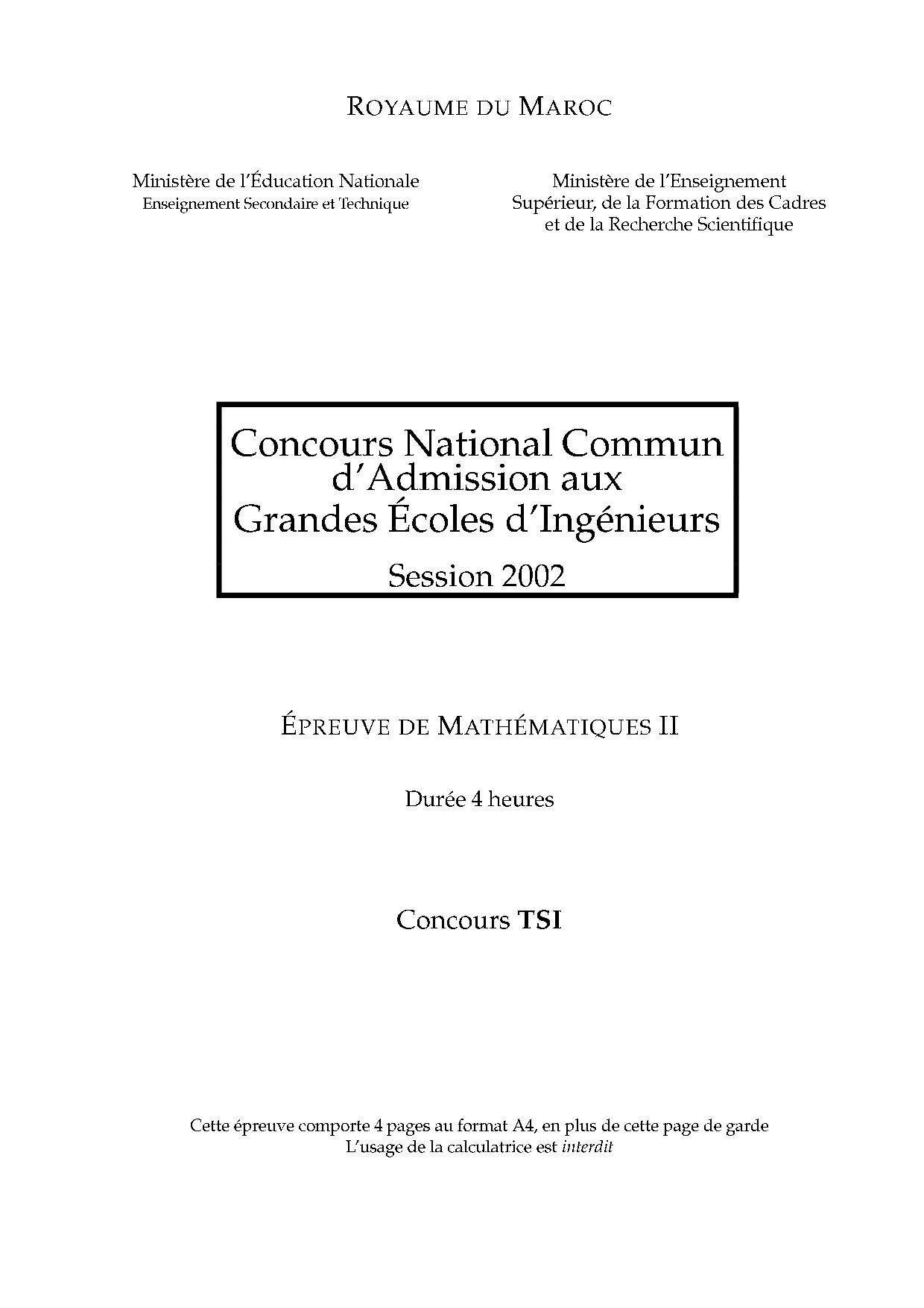 CNC TSI 2002 Maths 2 Epreuve