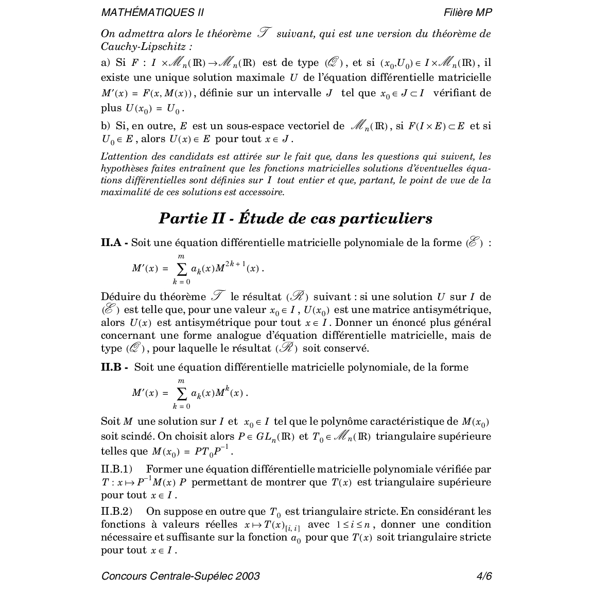 Centrale-Supelec MP 2003 Maths 2 Epreuve