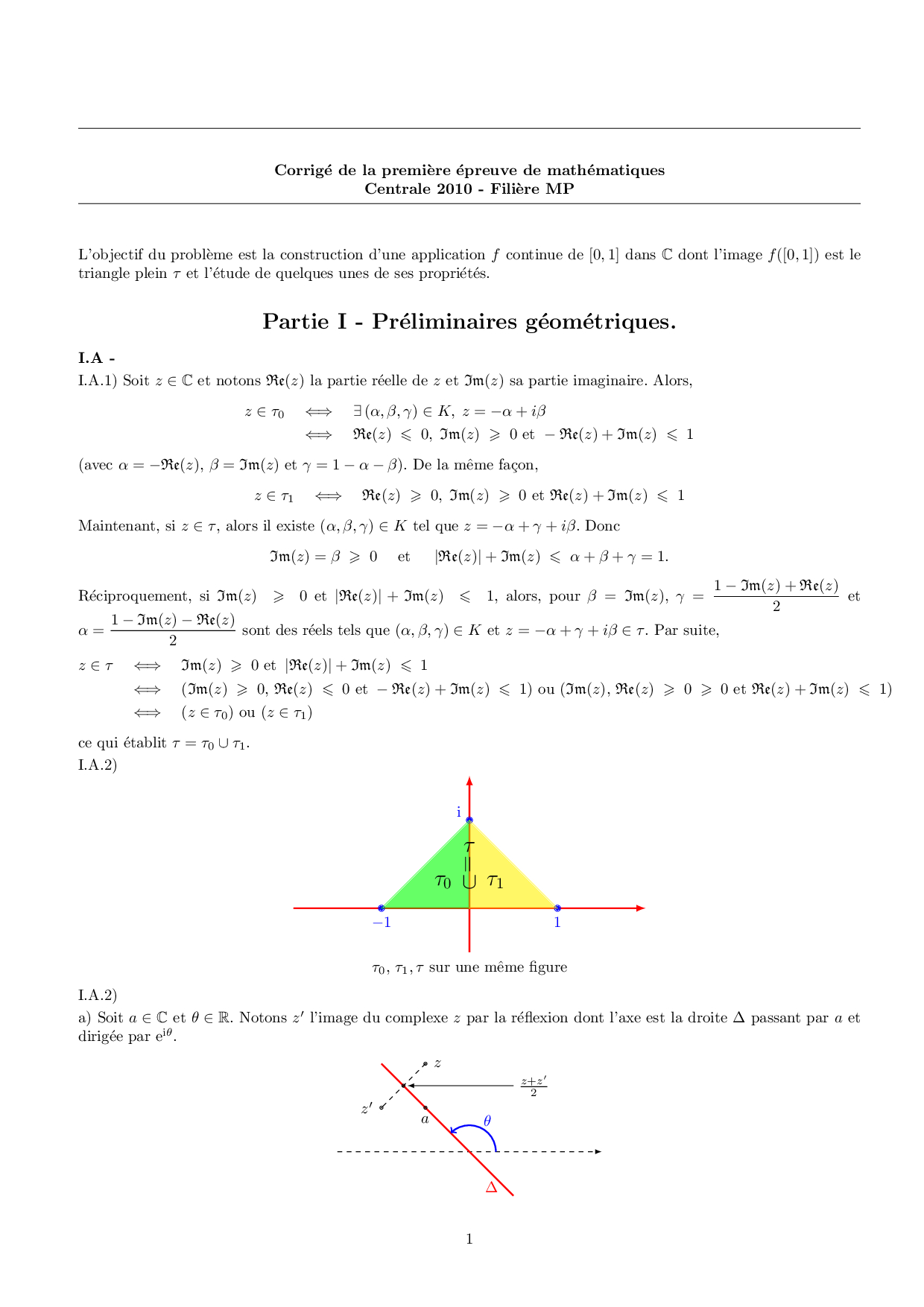 Centrale-Supelec MP 2010 Maths 1 Corrigé