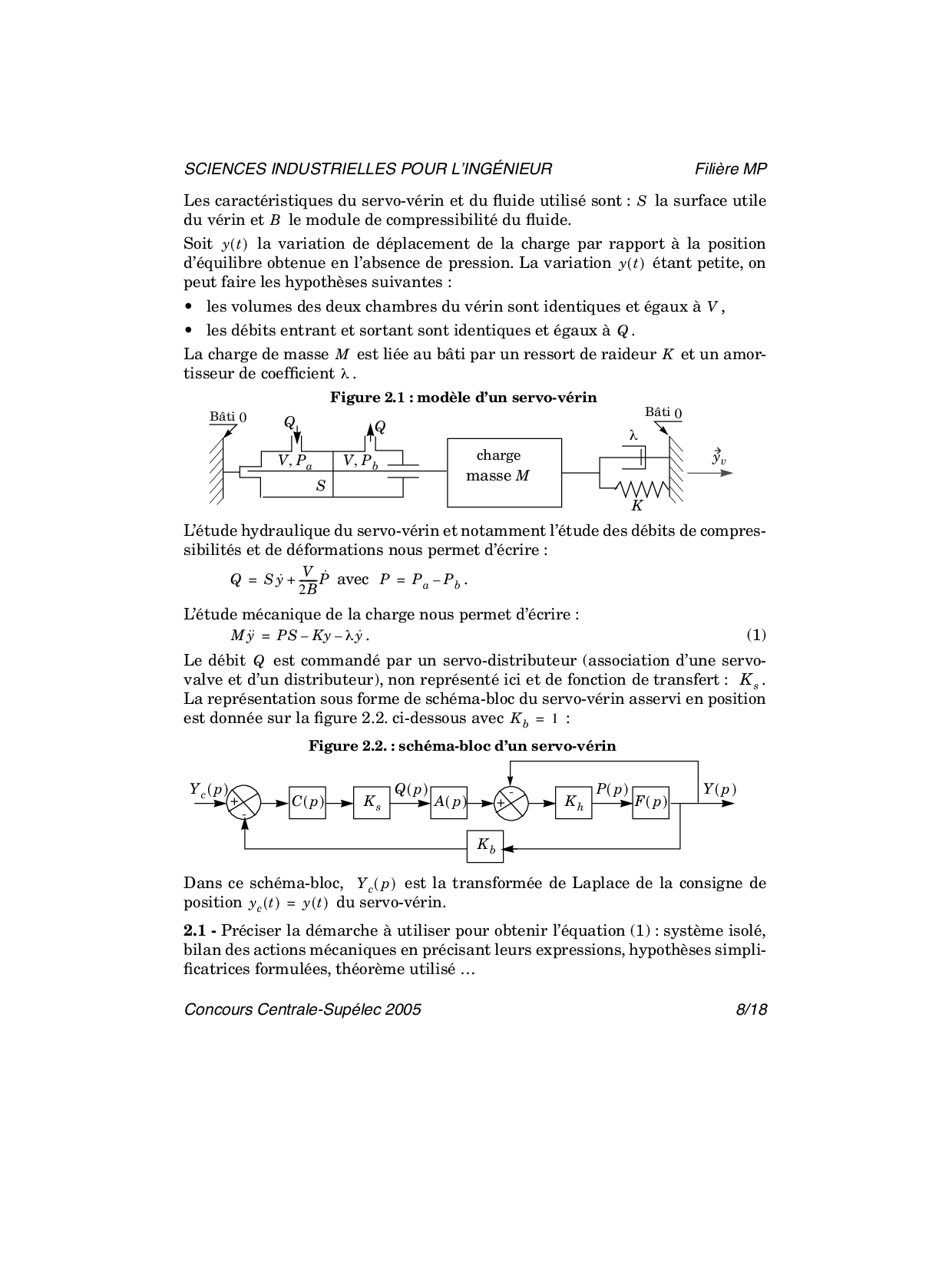 Centrale-Supelec MP SII 2005 Epreuve