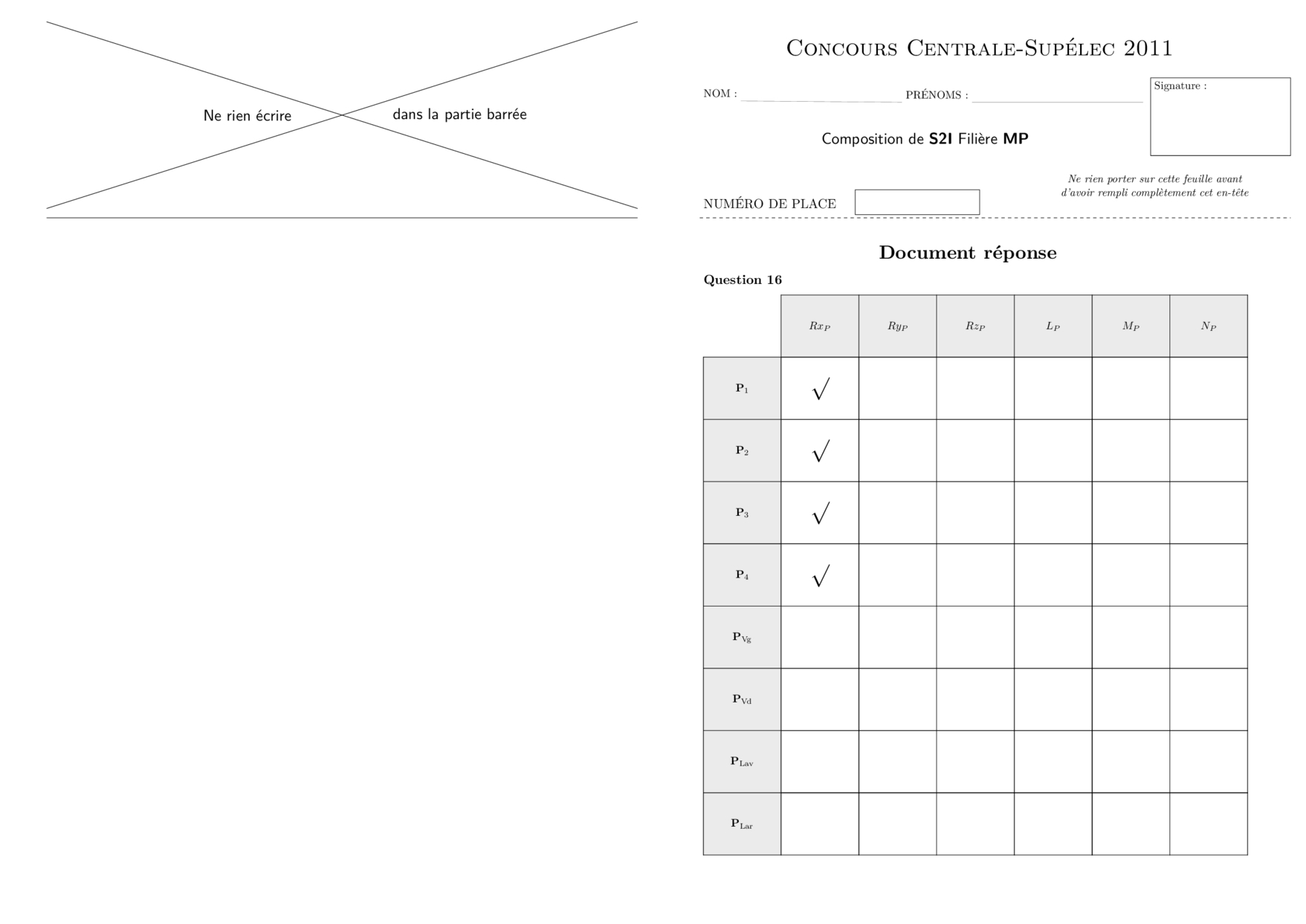 Centrale-Supelec MP SII 2011 Epreuve