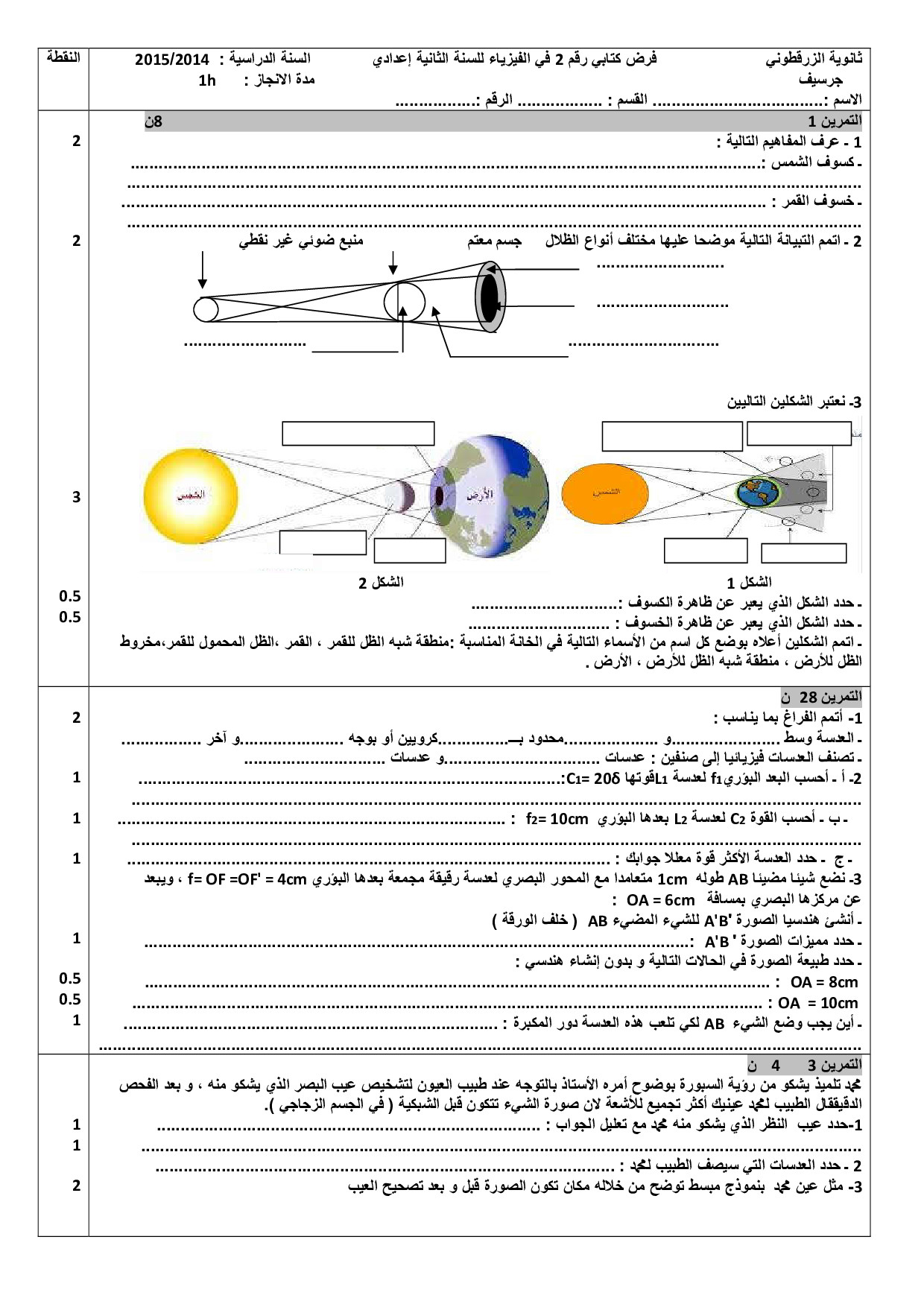 الفرض 2 نموذج 4 - الفيزياء والكيمياء ثانية إعدادي الدورة الثانية