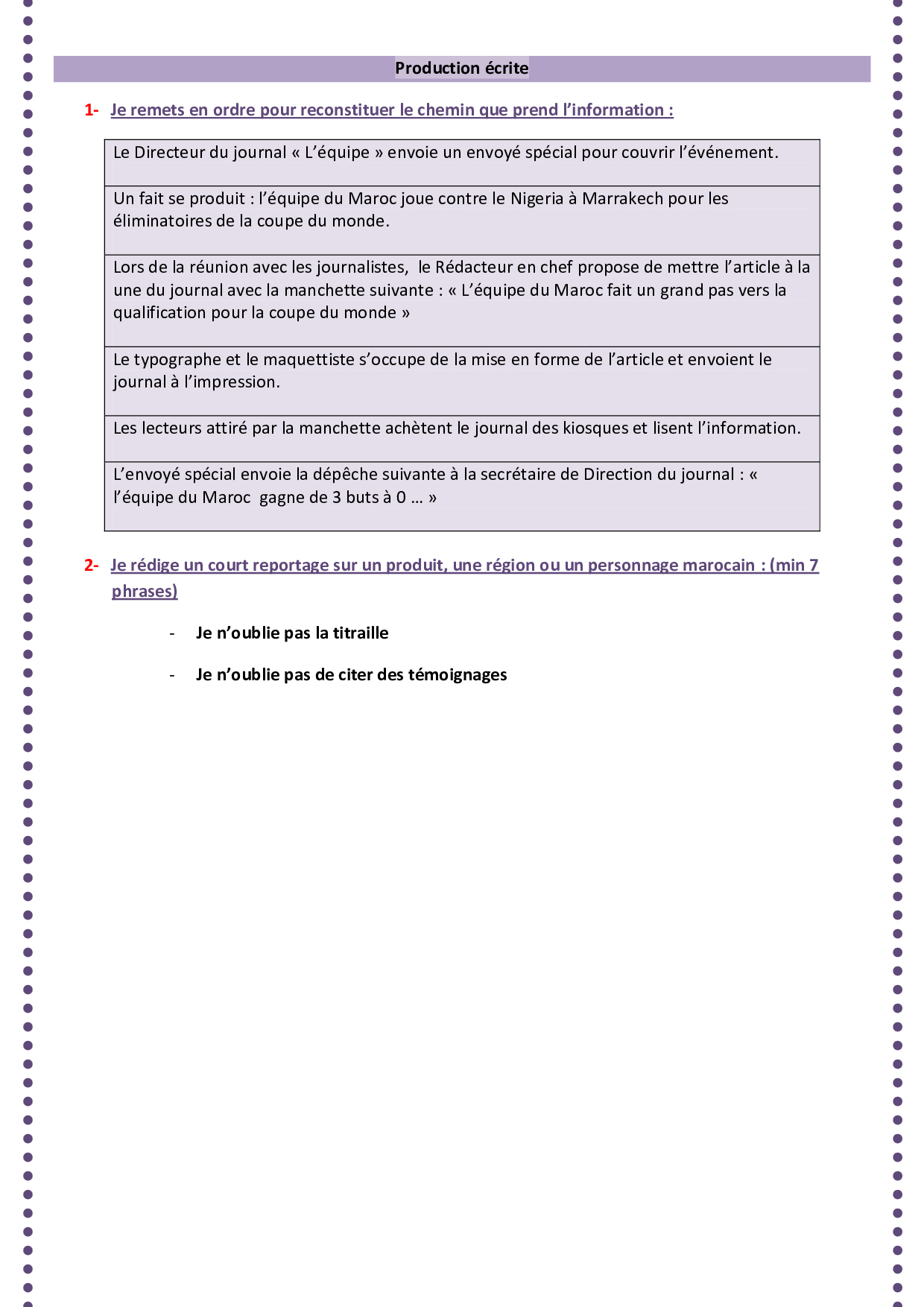 Devoir 2 Modèle 5 - Français 2AC Semestre 1